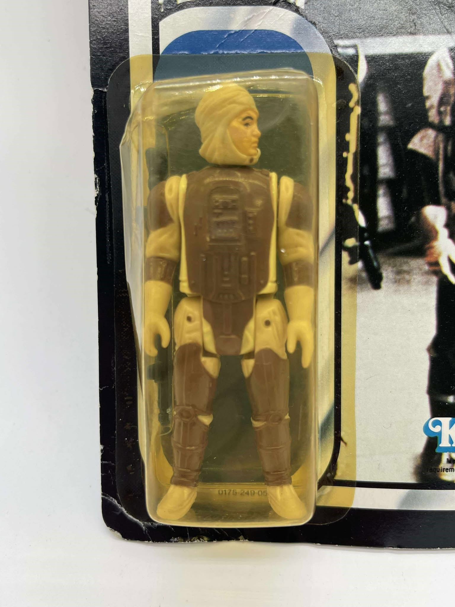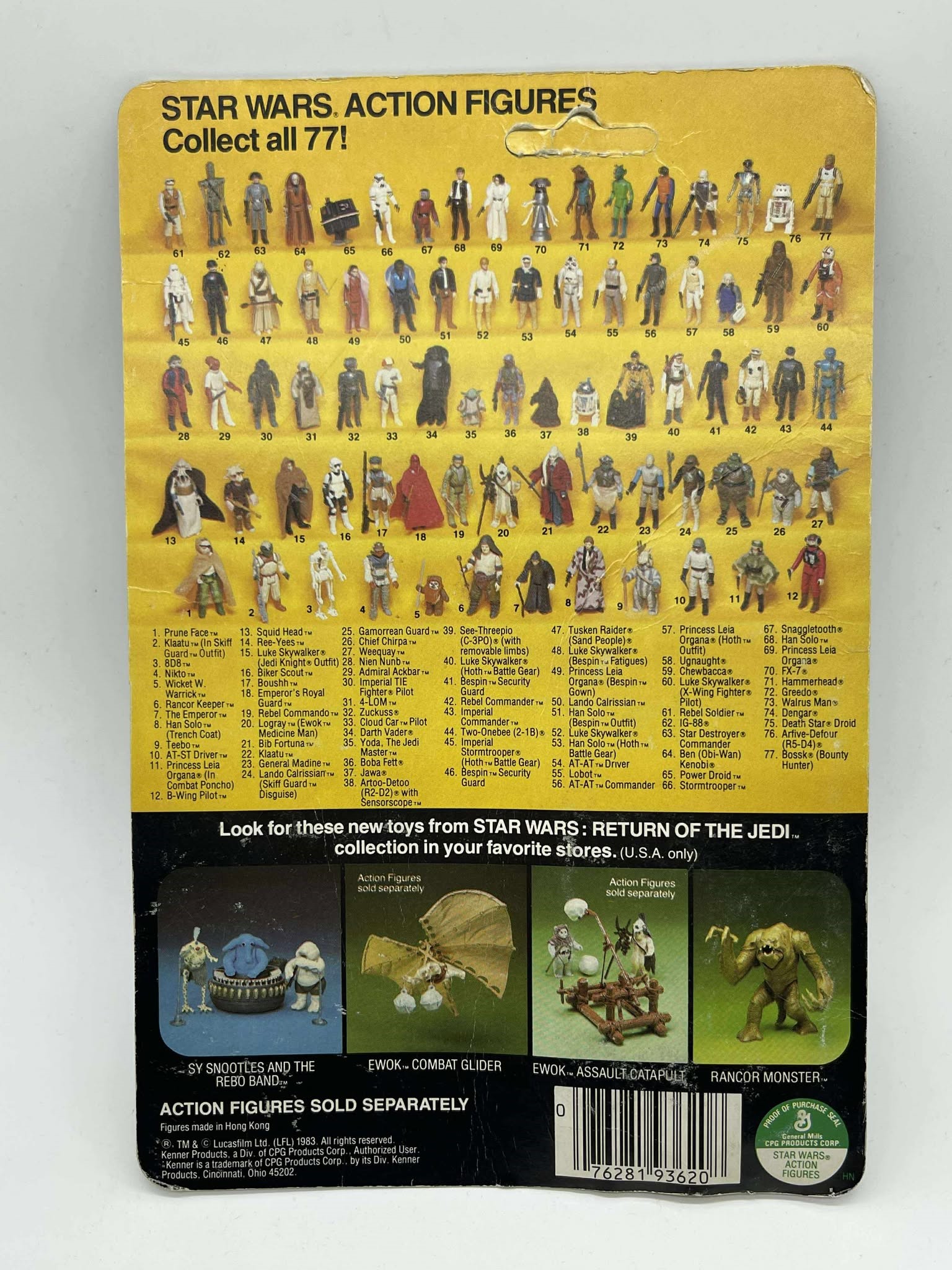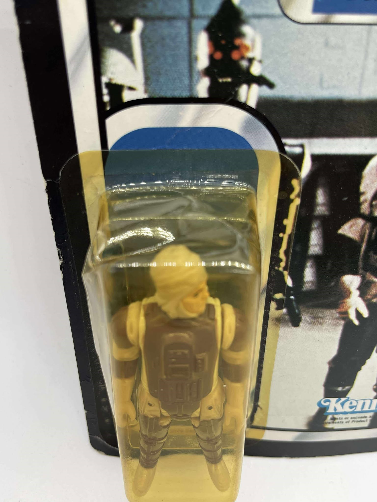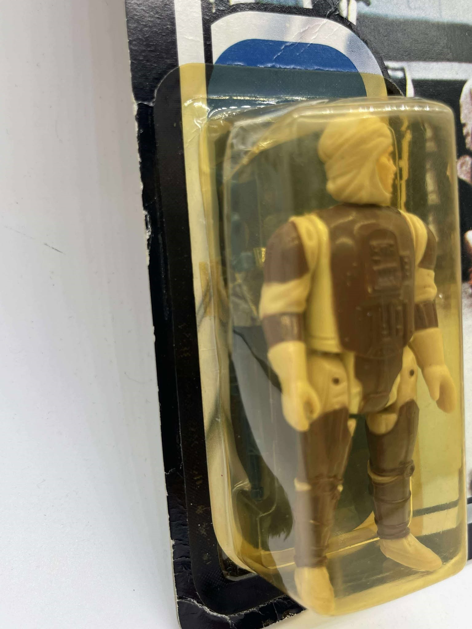 1983 - Kenner - ROTJ Dengar Mint On Card - 77 Back Action Figure w/ Star Case. The bubble has a dent on top and side. Condition: Fine Value Code: C8 ($25-$100)