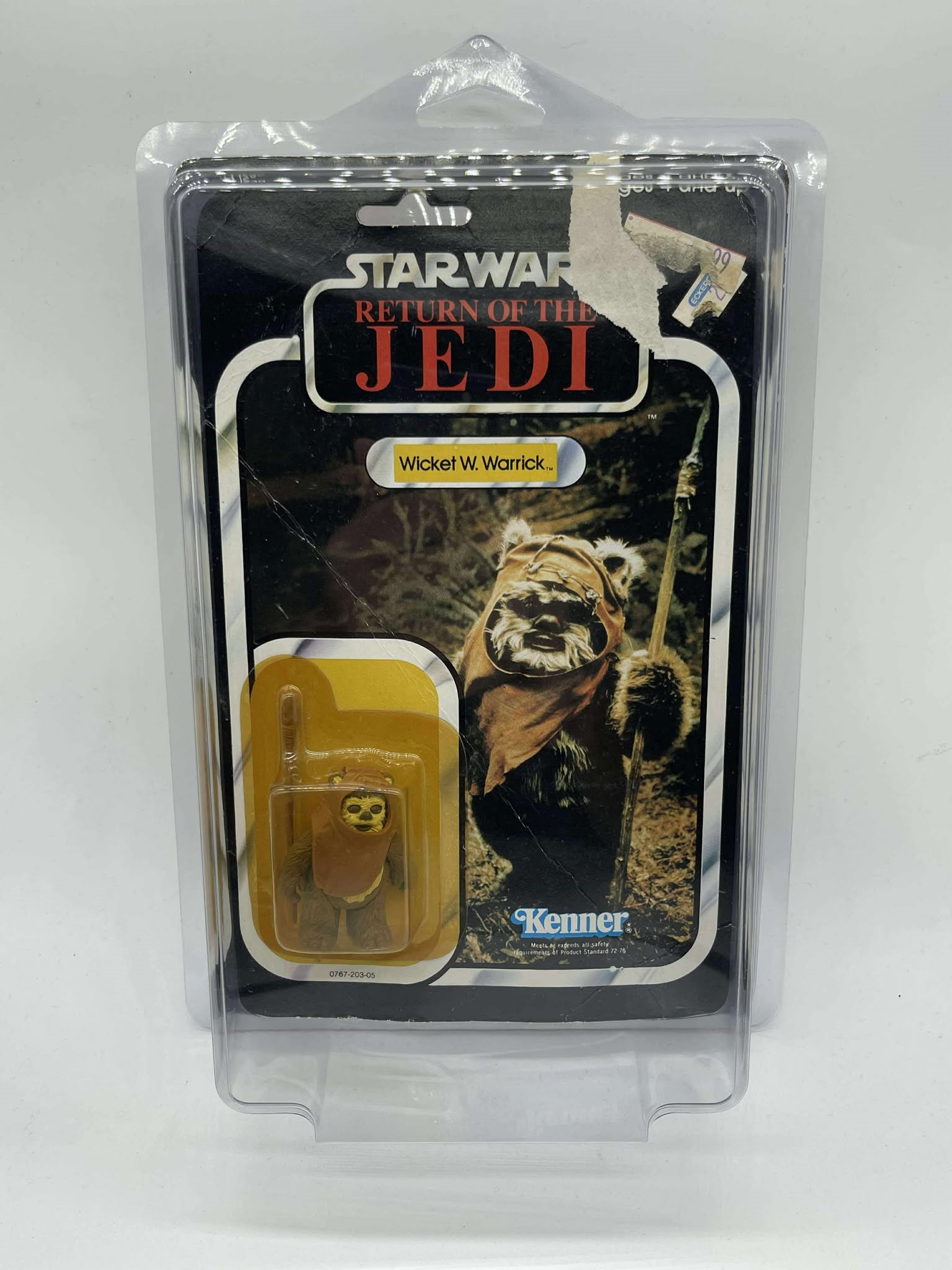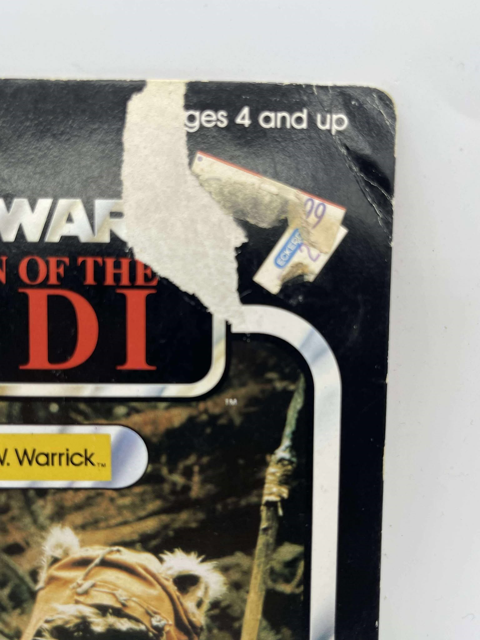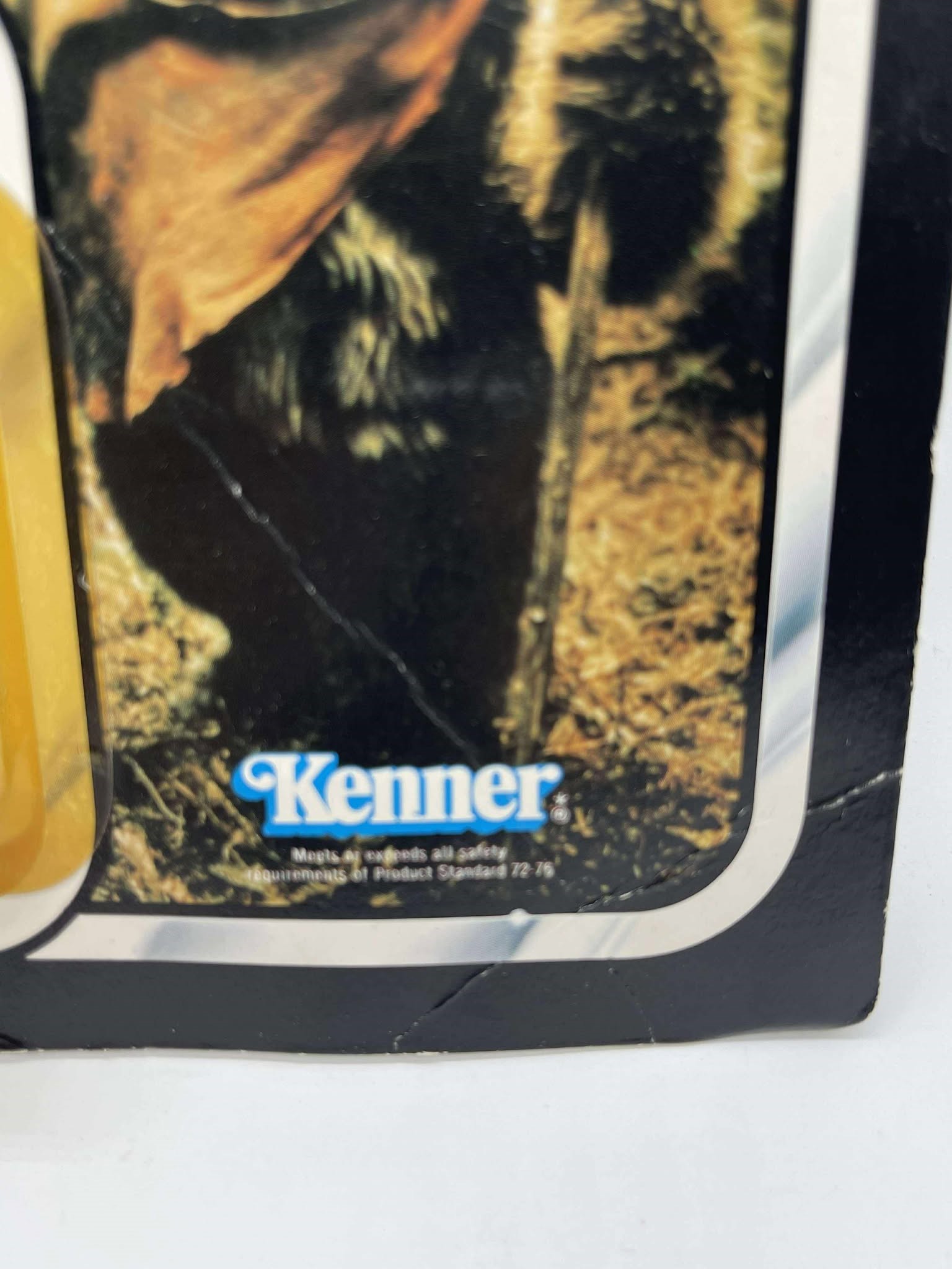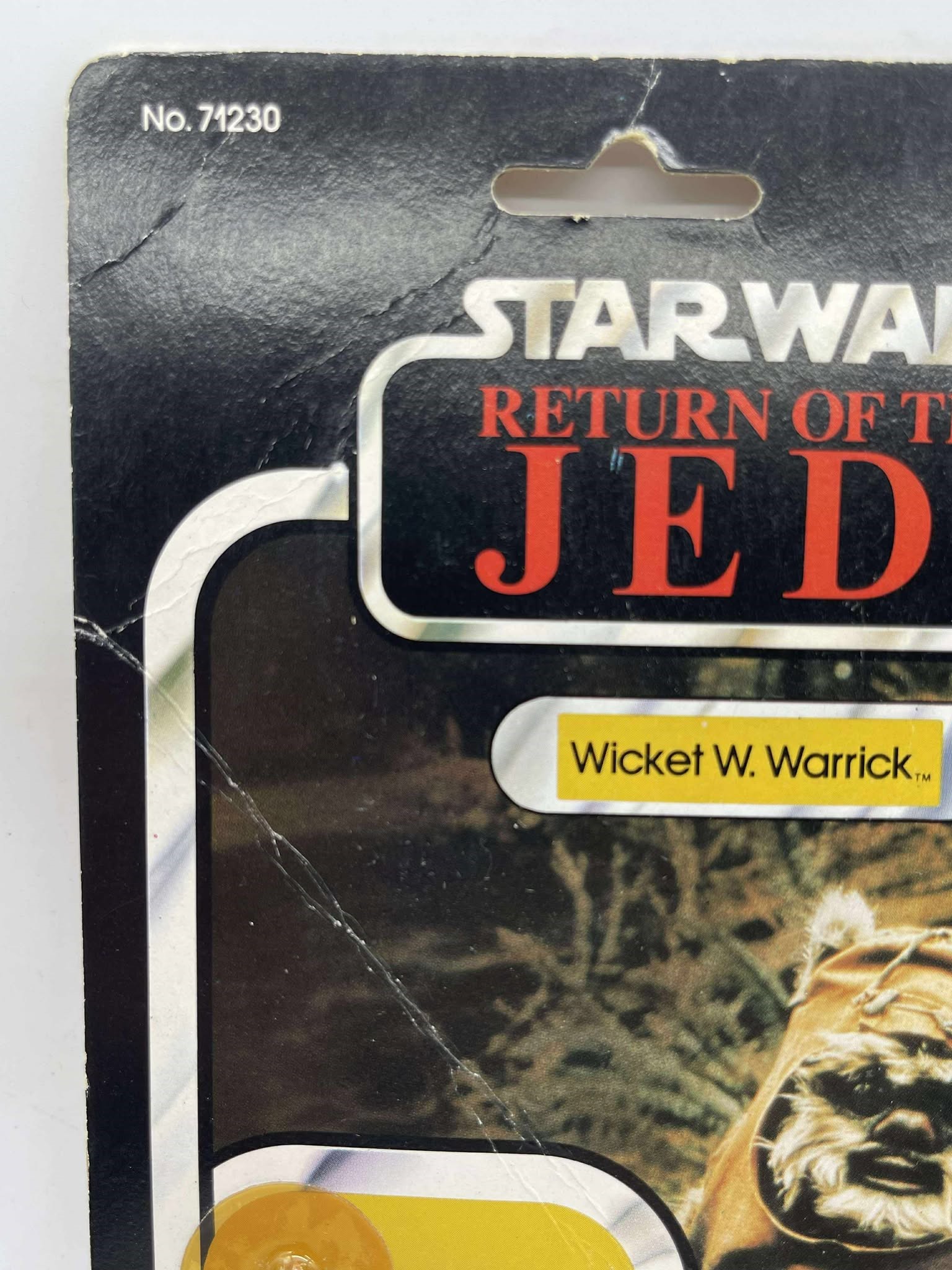1983 - Kenner - ROTJ Wicket W. Warrick Mint On Card - 77 Back Action Figure w/ Star Case. The card has some creasing and litho damage. Condition: Fair Value Code: C6 ($200-$400)