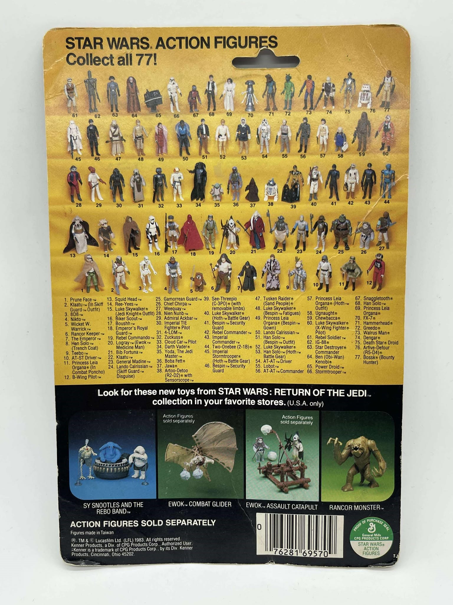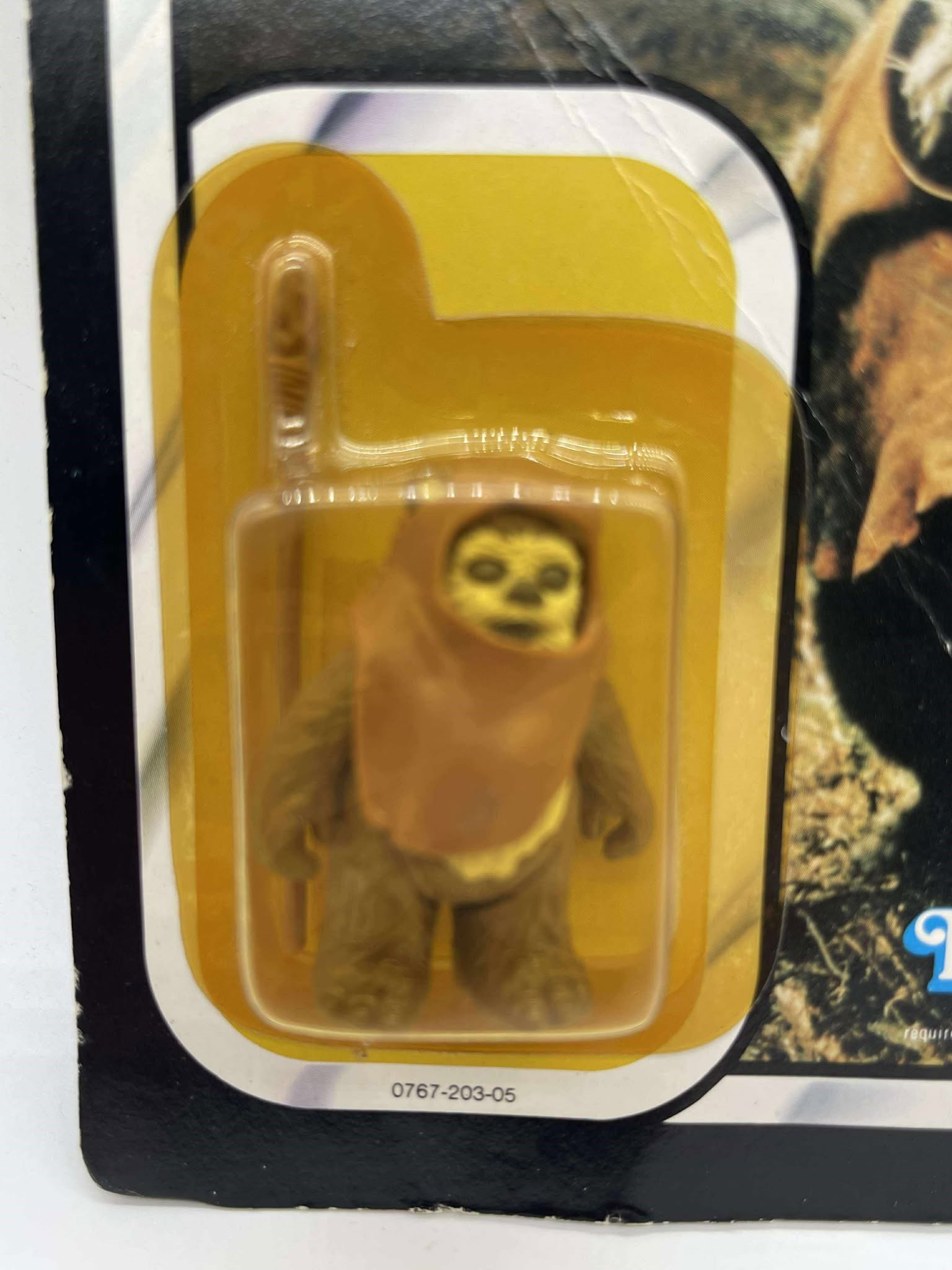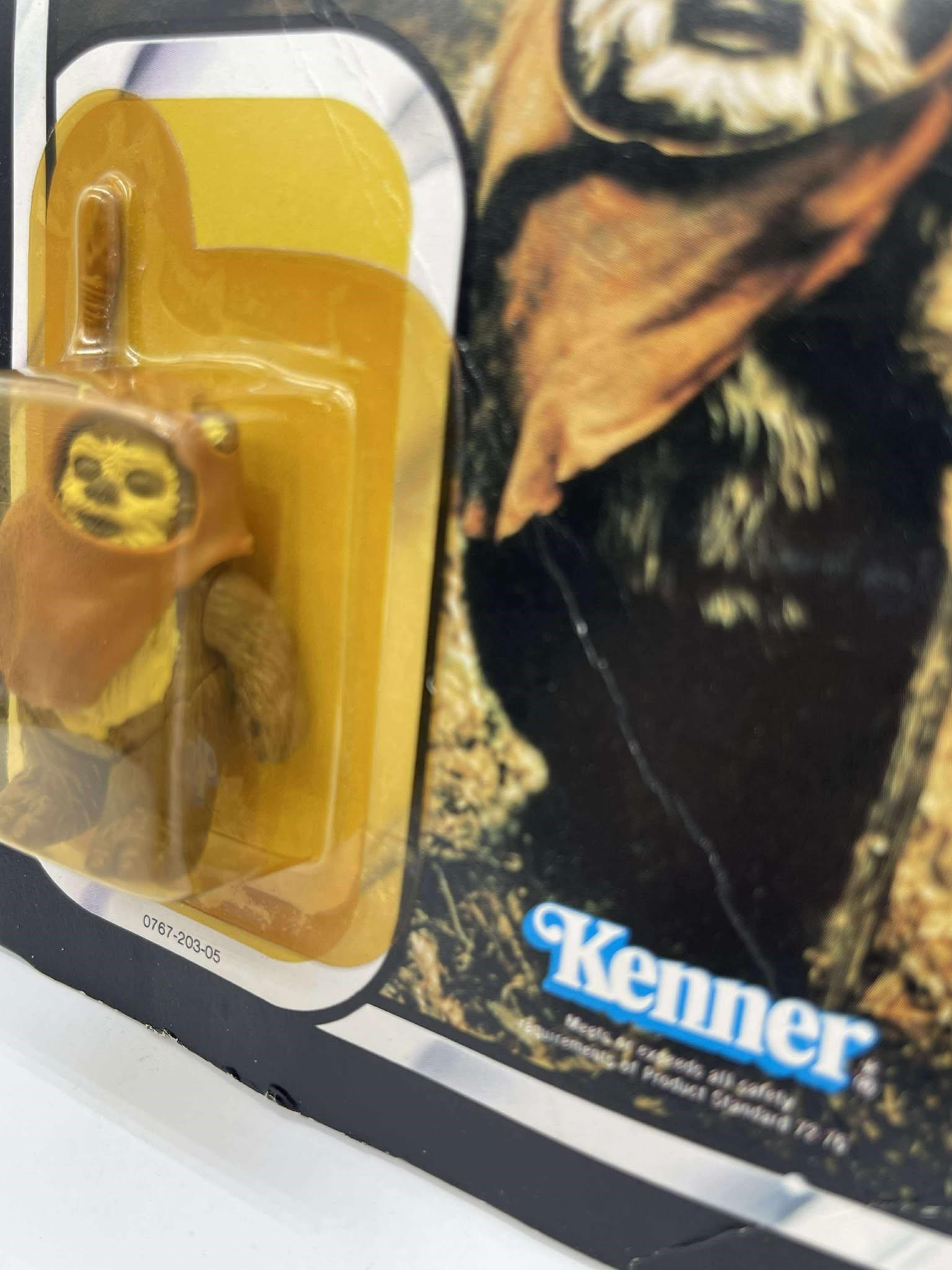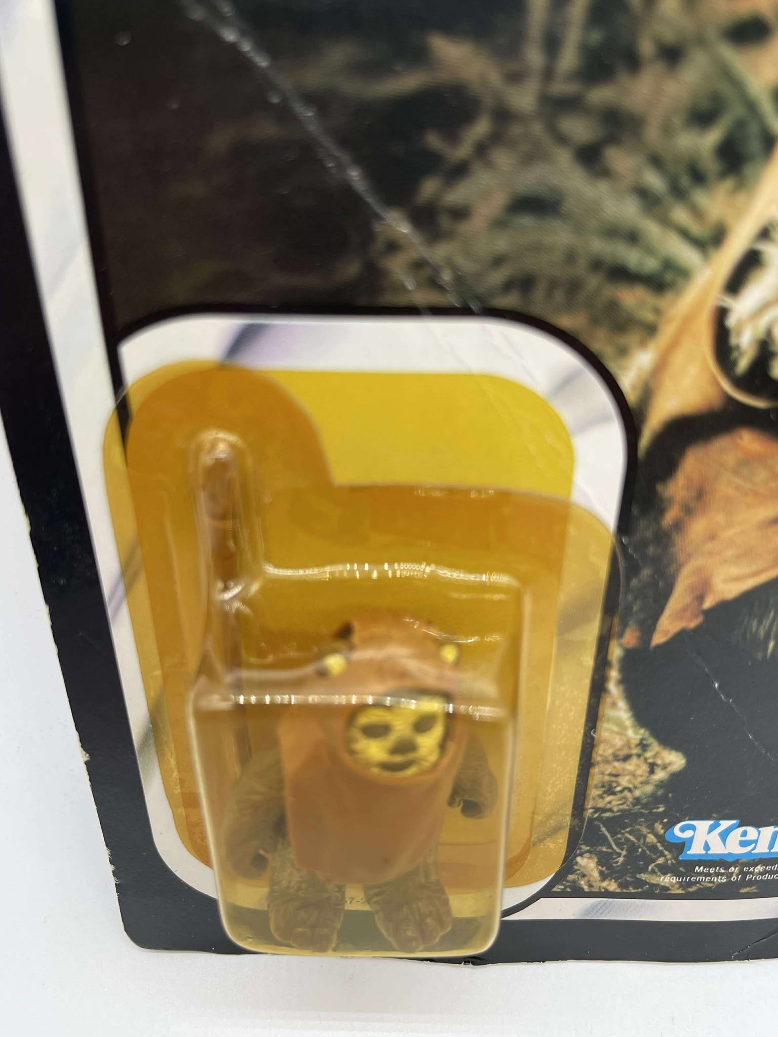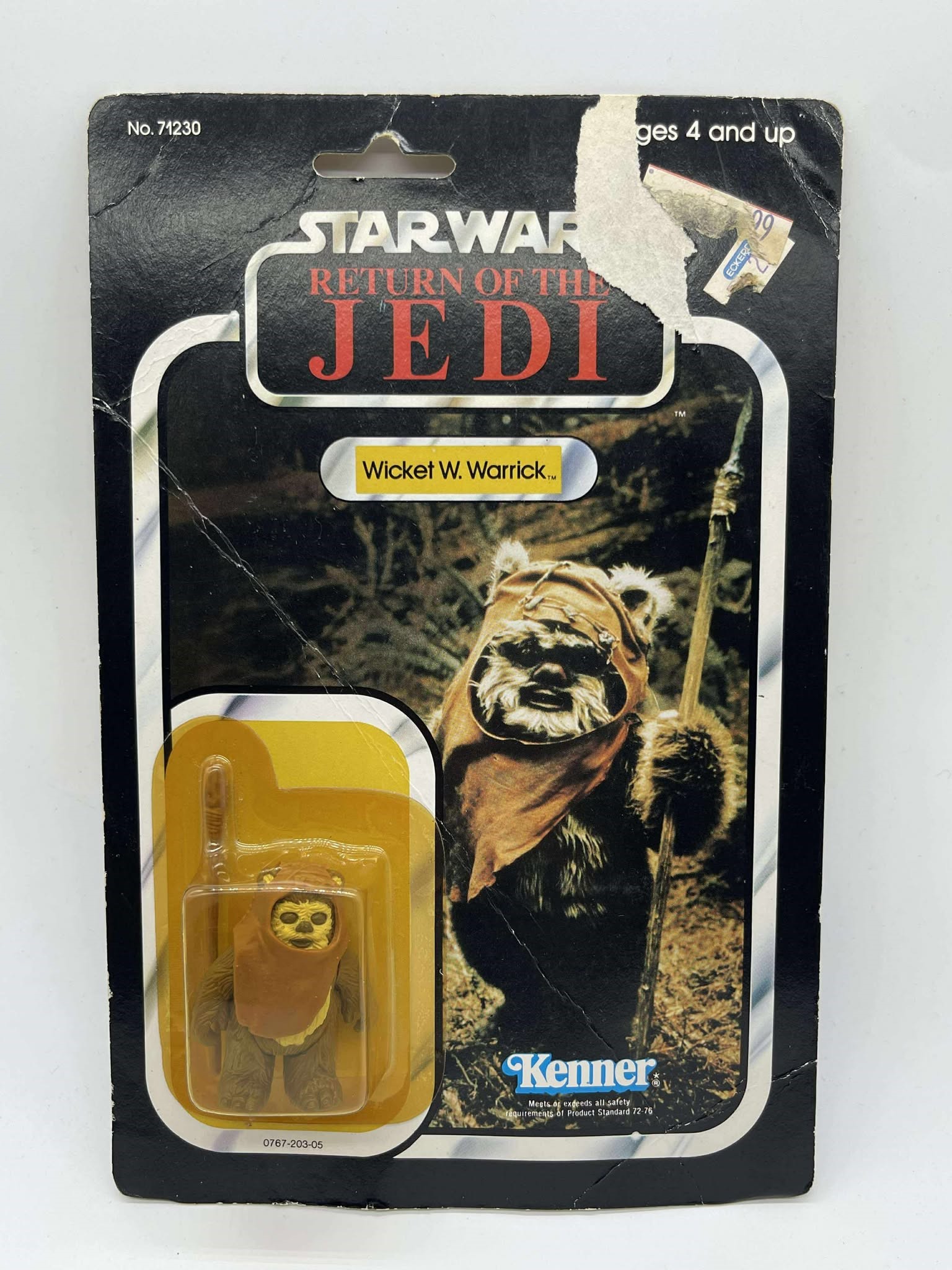 1983 - Kenner - ROTJ Wicket W. Warrick Mint On Card - 77 Back Action Figure w/ Star Case. The card has some creasing and litho damage. Condition: Fair Value Code: C6 ($200-$400)