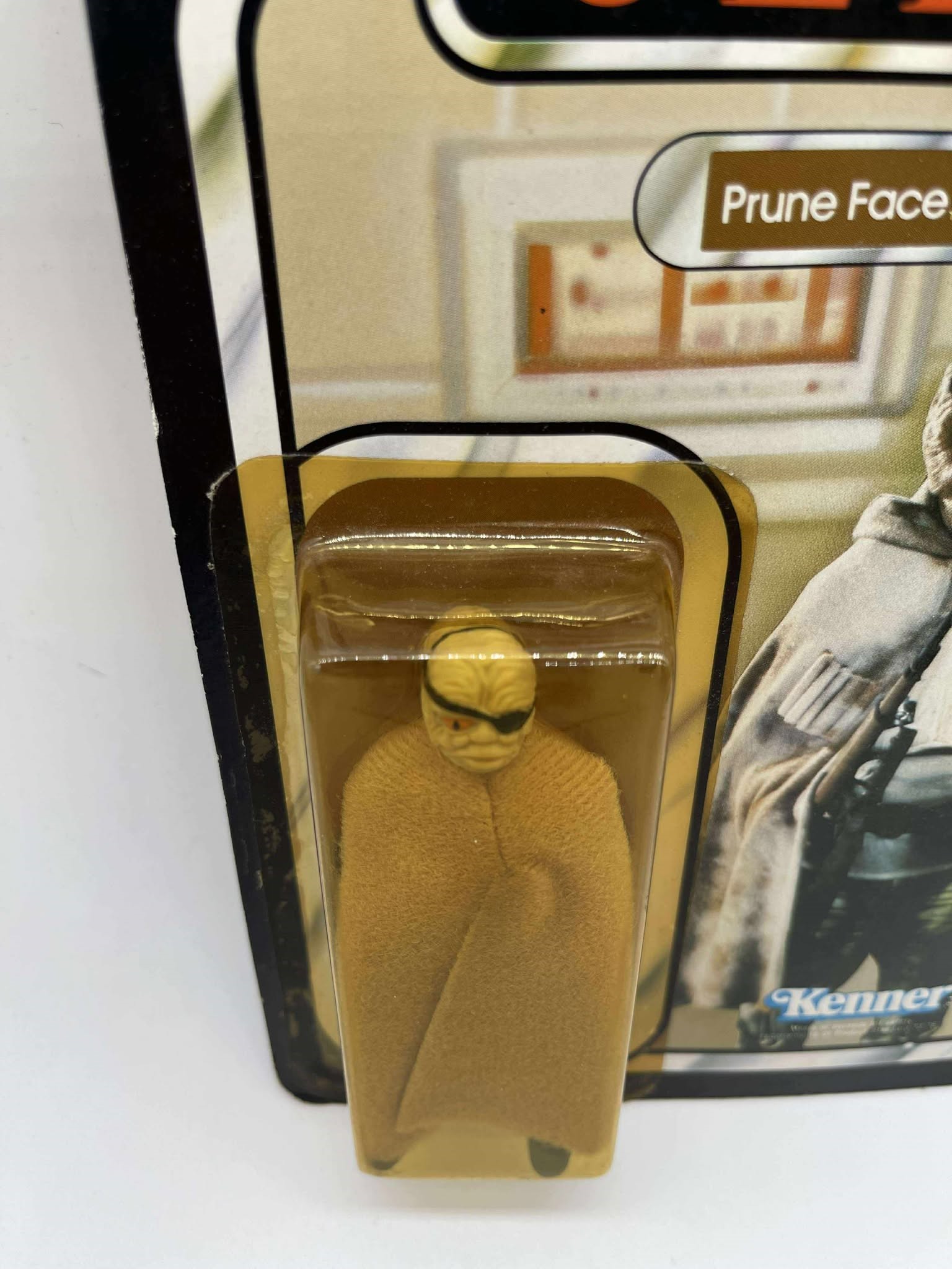1983 - Kenner - ROTJ Prune Face Mint On Card - 77 Back Action Figure w/ Star Case. The card and bubble are in great condition. Condition: EXC Value Code: C7 ($100-$200)