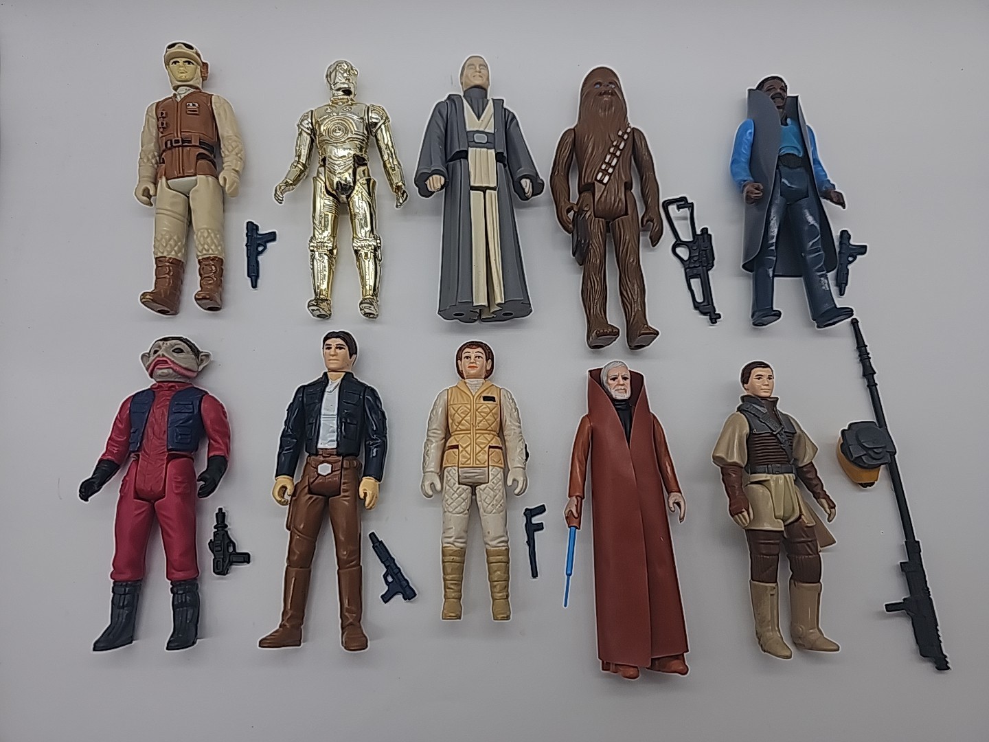 1977-1986 "Good Guys" Lot of 10 Complete Vintage Star Wars Complete: Hoth Rebel Soldier, Lando Calrissian, Han Solo Bespin, Nein Numb, C 3-PO,Obi-Wan Kenobi, Chewbacca, Leia Boushh, Leia Hoth, Anakin. Condition: Flawless - VF Valuation code: C6 $200-$400