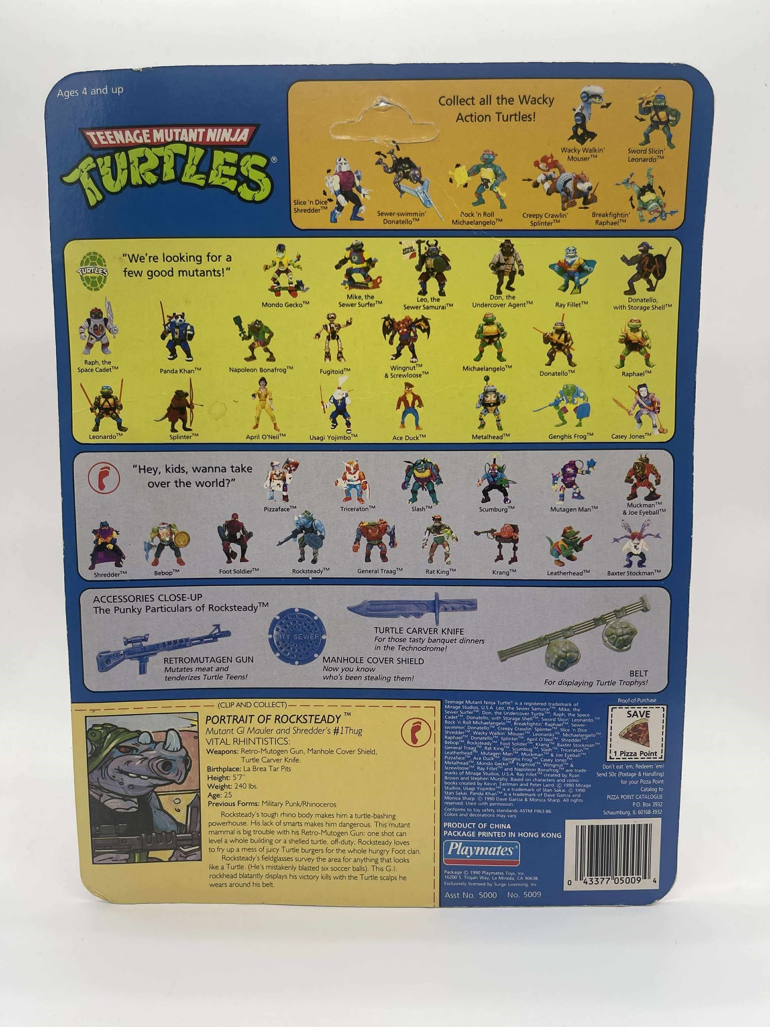 1990 - Playmates - Teenage Mutant Ninja Turtles Rocksteady Mint On Card Conditon: EXC Valuation Code: C8 $25-$100