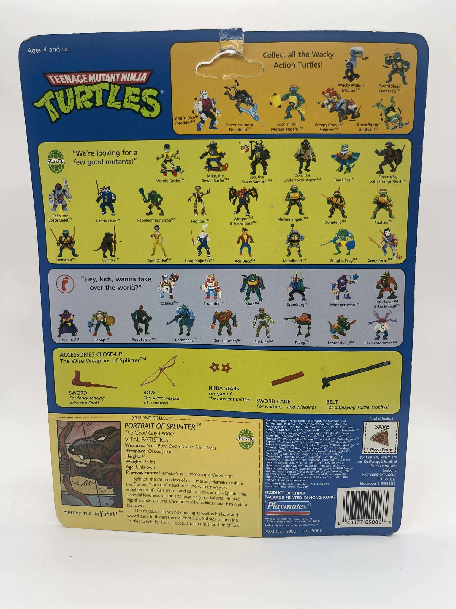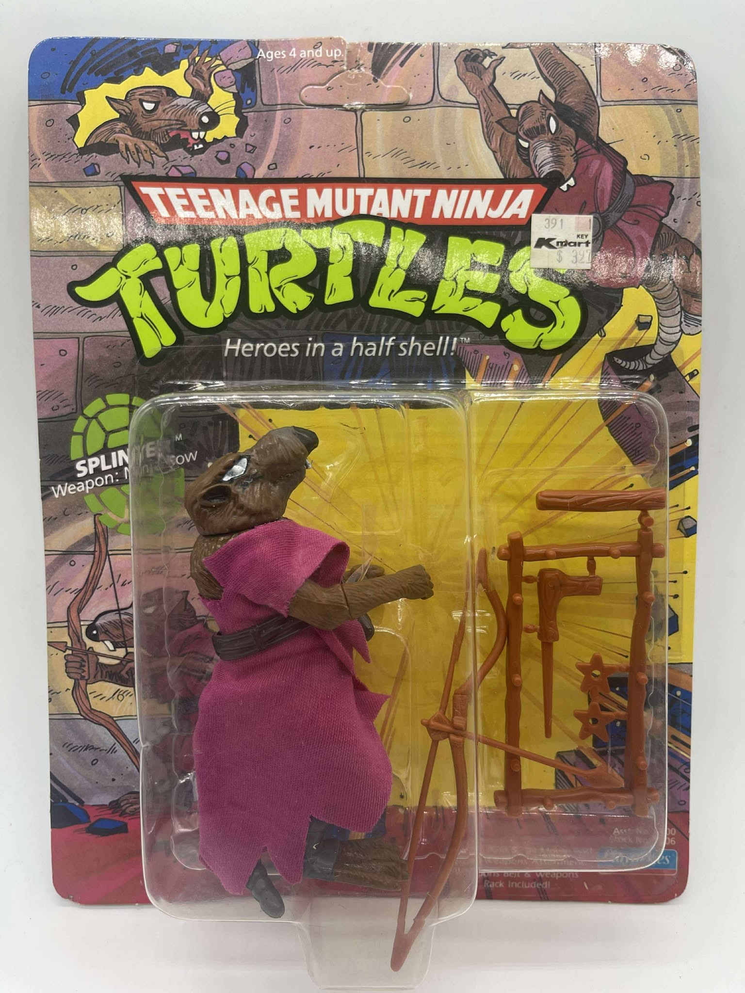 1990 - Playmates - Teenage Mutant Ninja Turtles Splinter Mint On Card. Tear on top of peghole. Conditon: VF Valuation Code: C8 $25-$100