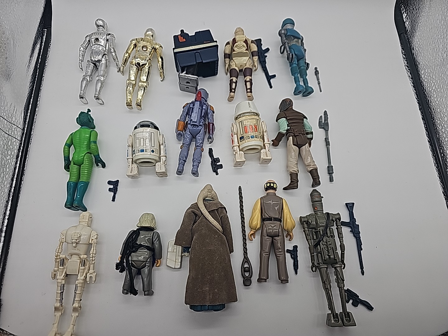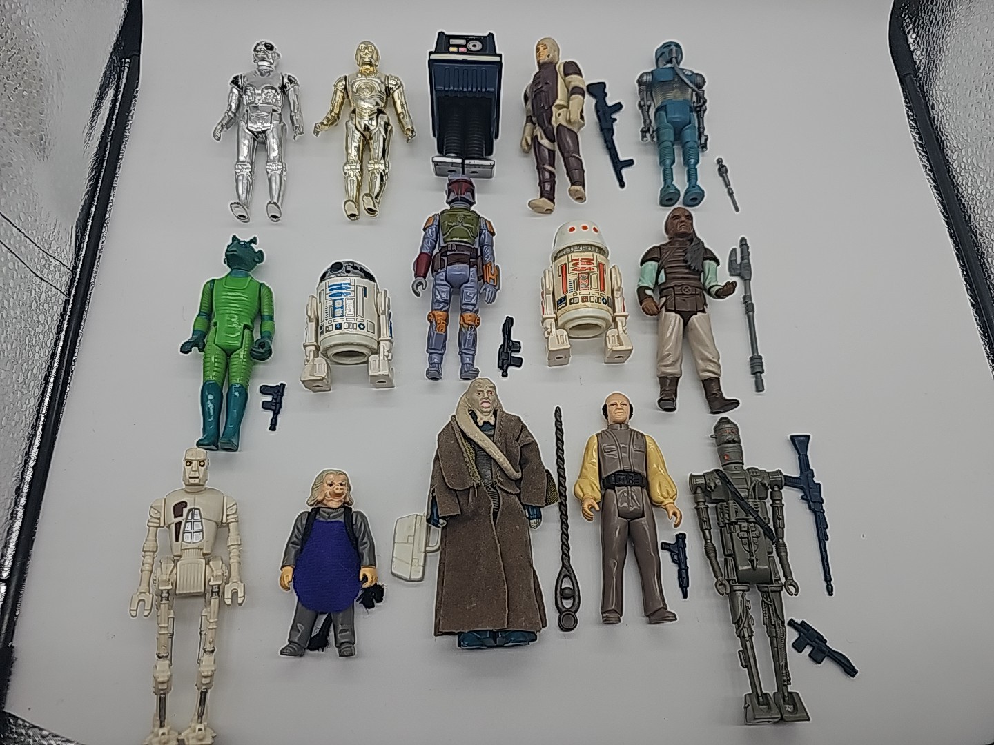 1977-1986 Lot of 15 Vintage Star Wars Complete: Weequay, Power Droid, 2-1B, Boba Fett (HK Olive Chest), R5-D4, Bib Fortuna, 8D8, R2-D2 (Taiwan),C-3PO, Greedo, IG-88, Lobot, Ugnaught, FX-7, Dengar. Condition: Flawless - VF Valuation code: C6 $200-$400