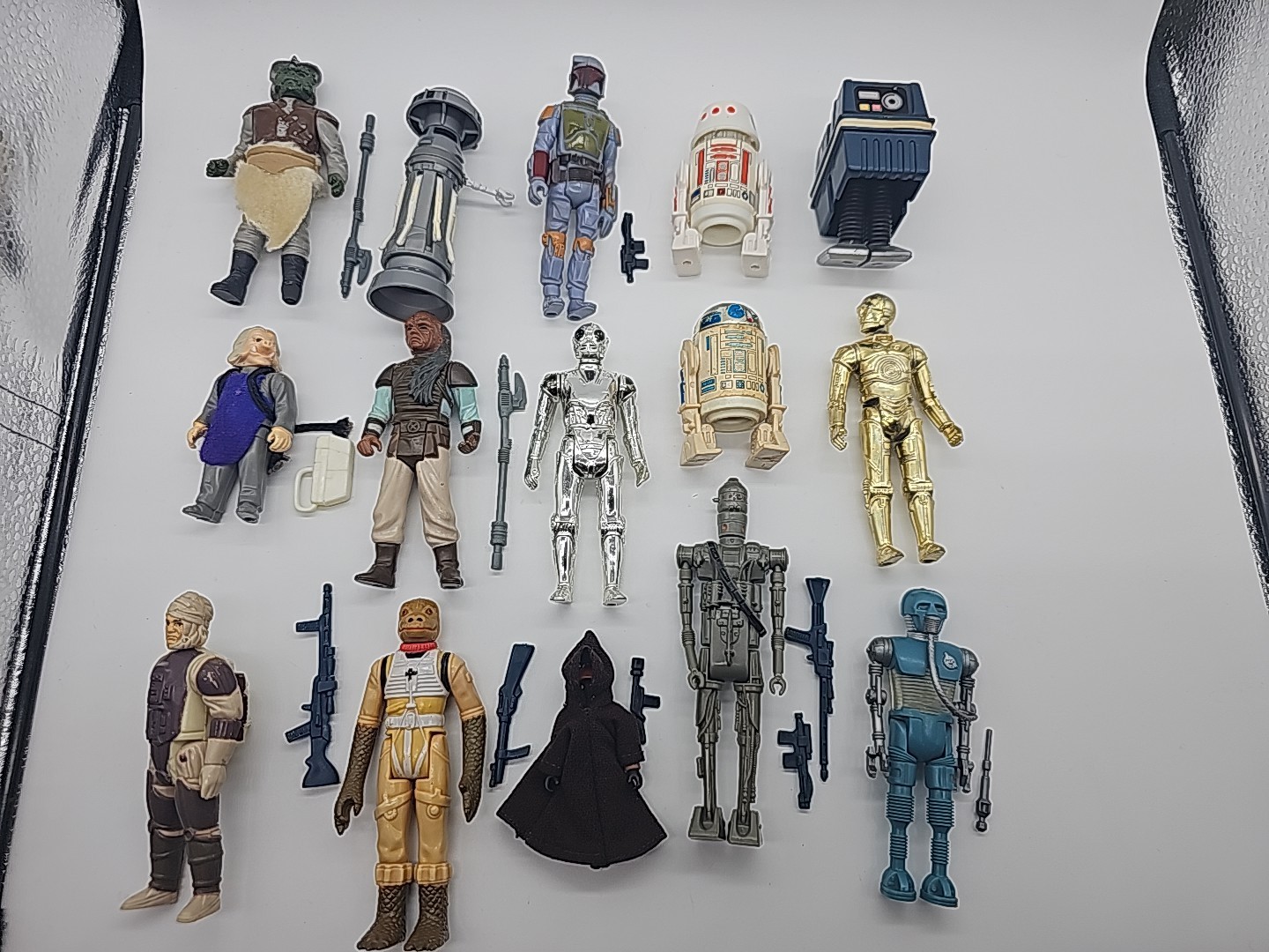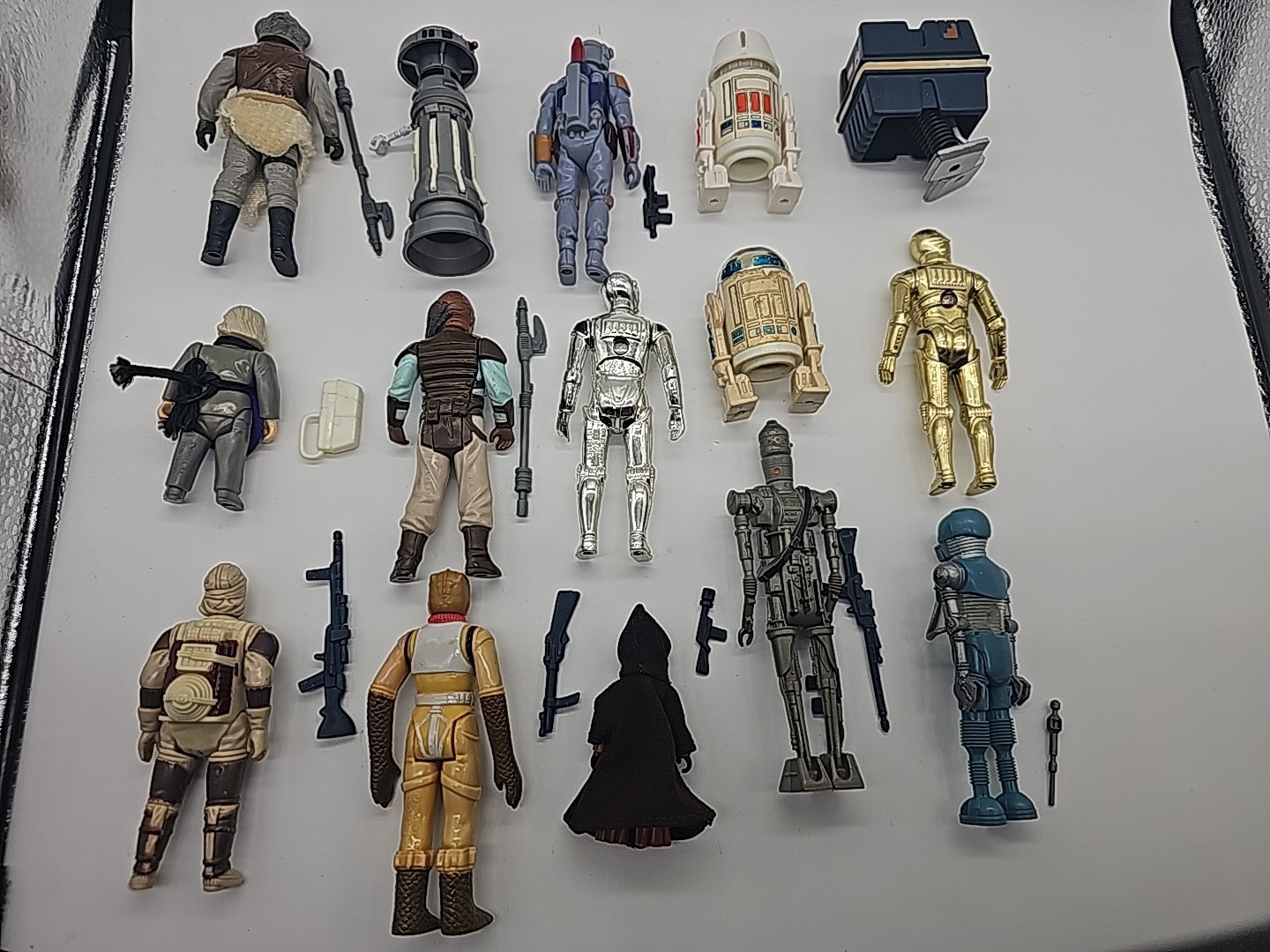 1977-1986 Lot of 15 Vintage Star Wars Complete: Weequay, Power Droid, 2-1B, Boba Fett (Taiwan), R5-D4,Klaatu, FX-7, R2-D2,C-3PO, Weequay, IG-88, Death Star Droid, Jawa, Bossk, Dengar. Condition: Flawless - VF Valuation code: C6 $200-$400
