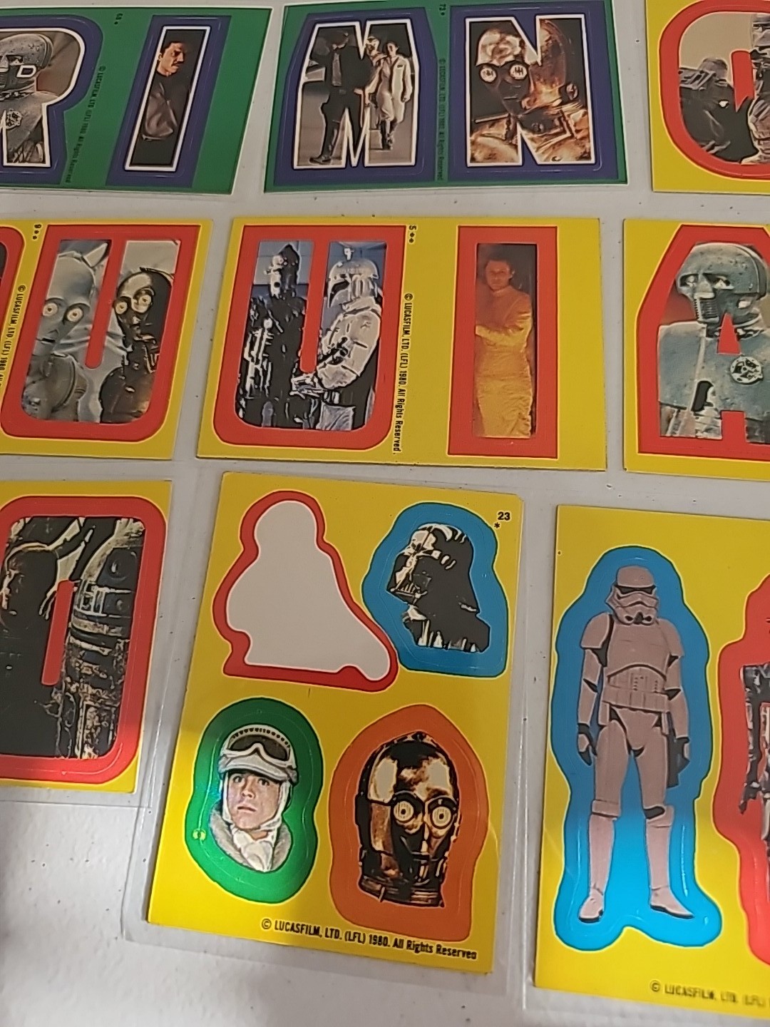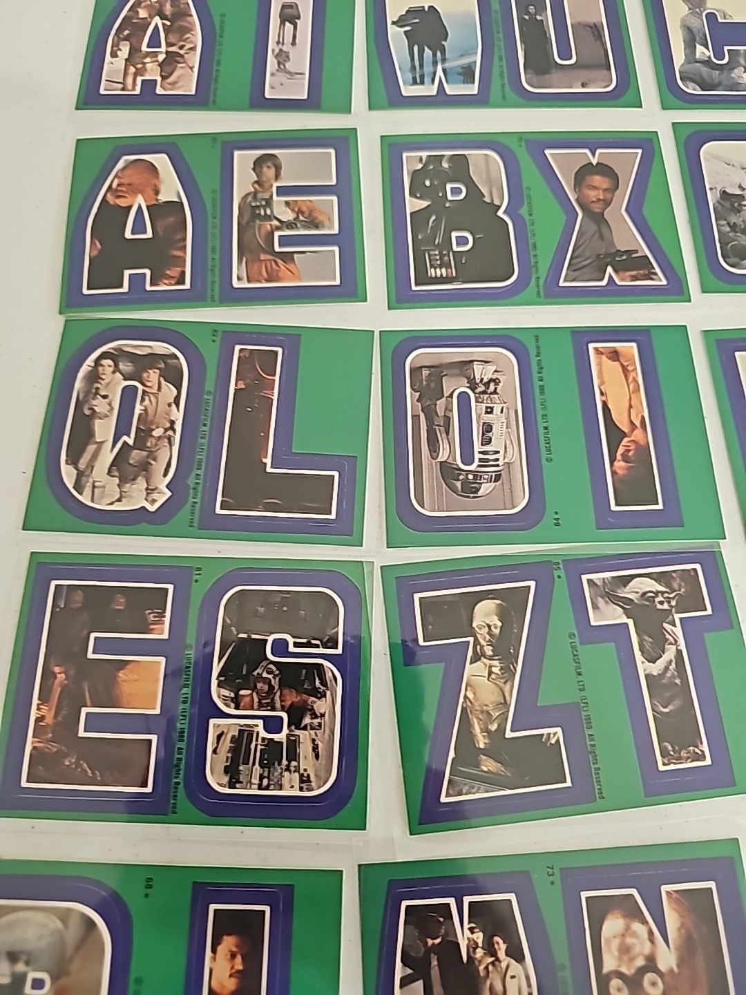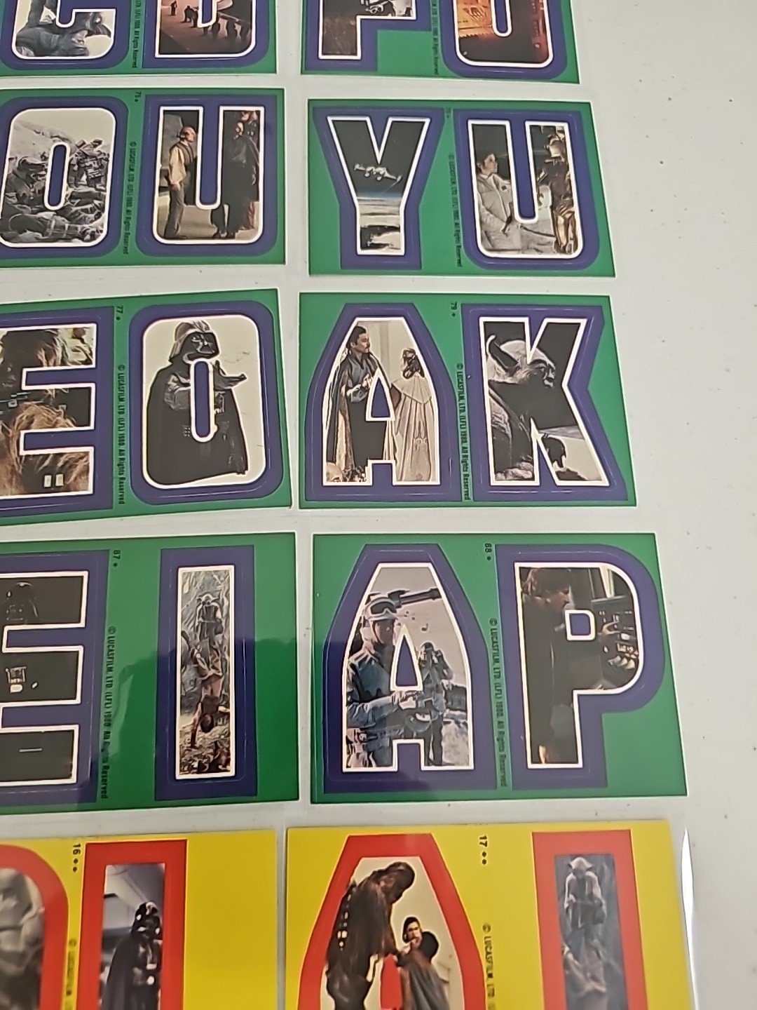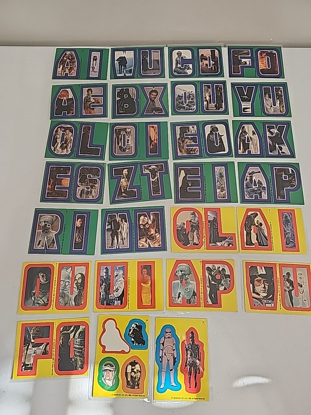 Lof of 27 Topps Star Wars Green & Yellow Sticker Cards Condition: Fine Valuation Code: C8 $25-$100