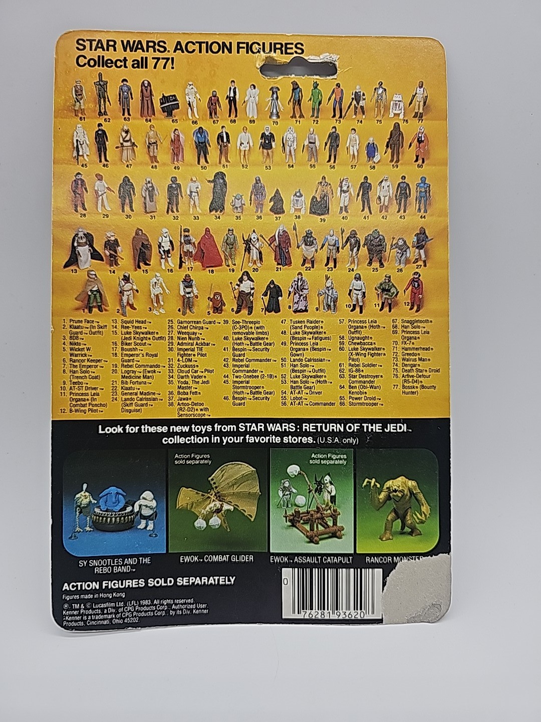 1983 - Kenner - ROTJ 4-LOM Mint On Card - 77 Back Action Figure w/ Star Case. The card has some a shaved pop bubble is still fully sealed. Conditon: VF Valuation Code: C8 $25-$100