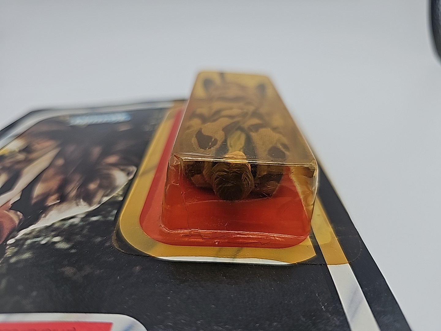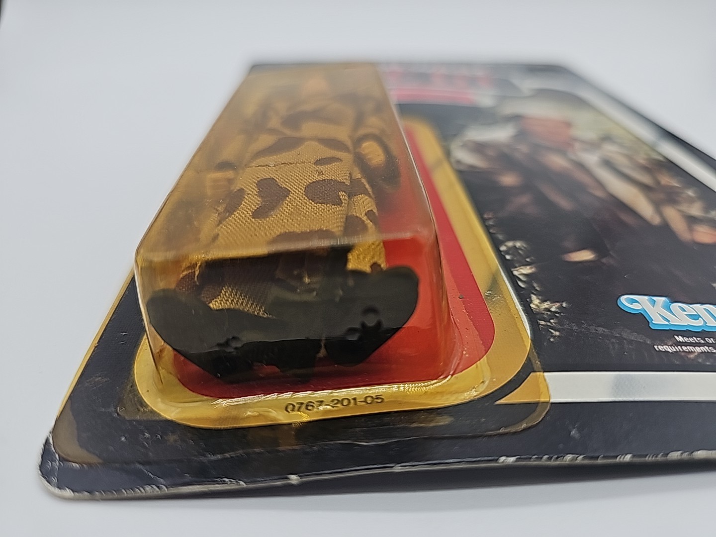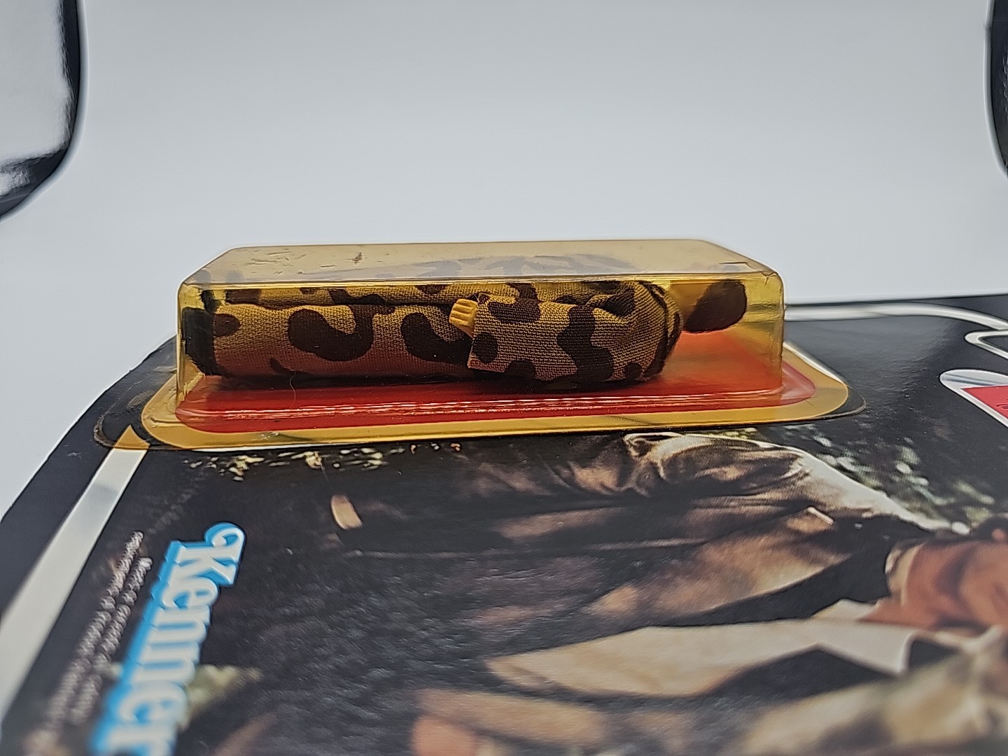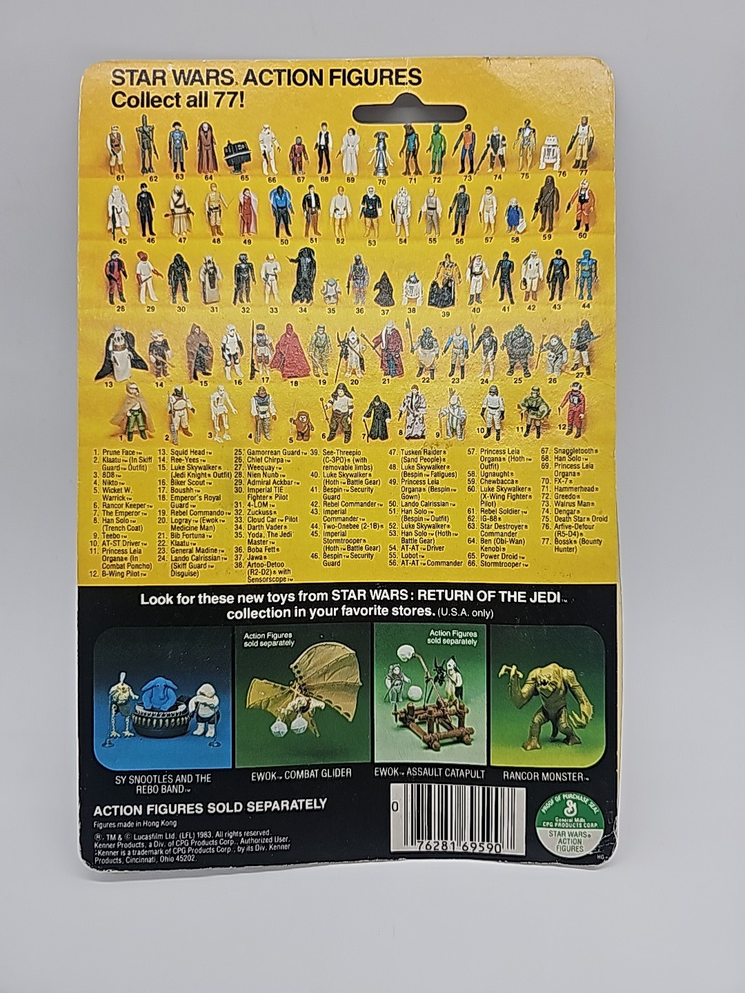 1983 - Kenner - ROTJ Han Solo Trenchcoat (camo lapels) Mint On Card - 77 Back Action Figure w/ Star Case. The card has some price tag residue on top right front. Condition: EXC Valuation code: C7 $100-$200