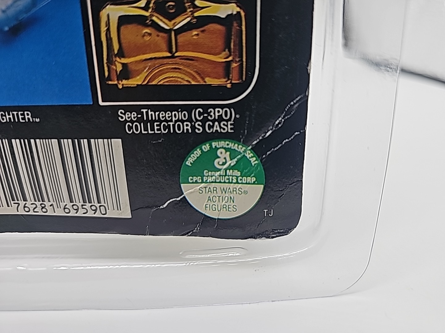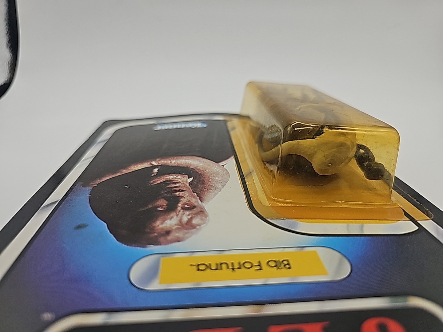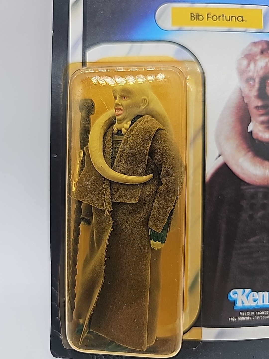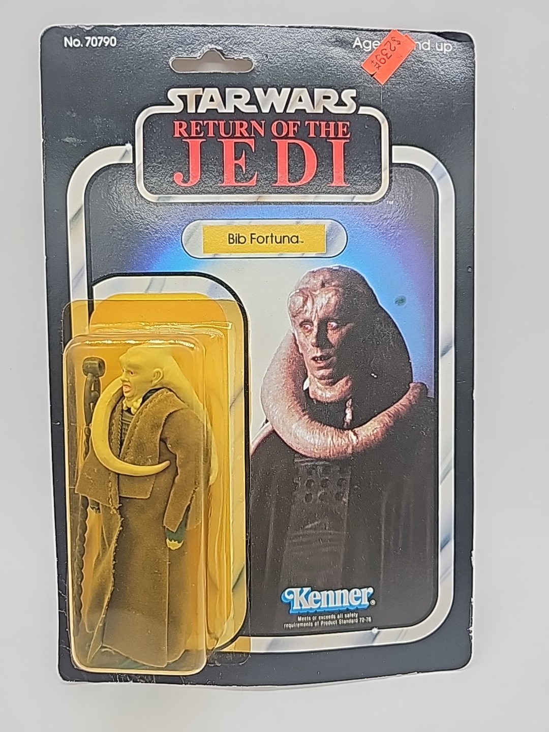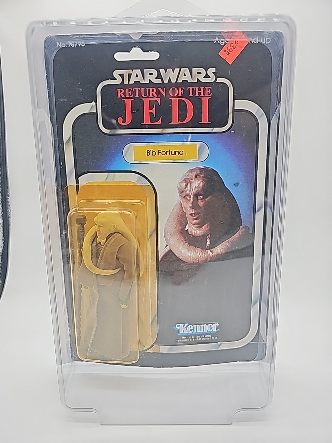 1983 - Kenner - ROTJ Bib Fortuna Mint On Card - 77 Back Action Figure w/ Star Case. The bubble has some lifting due to a bend in the card at bottom left of bubble. The bubble otherwise is firmly attached. Condition: VG Valuation code: C8 $25-$100