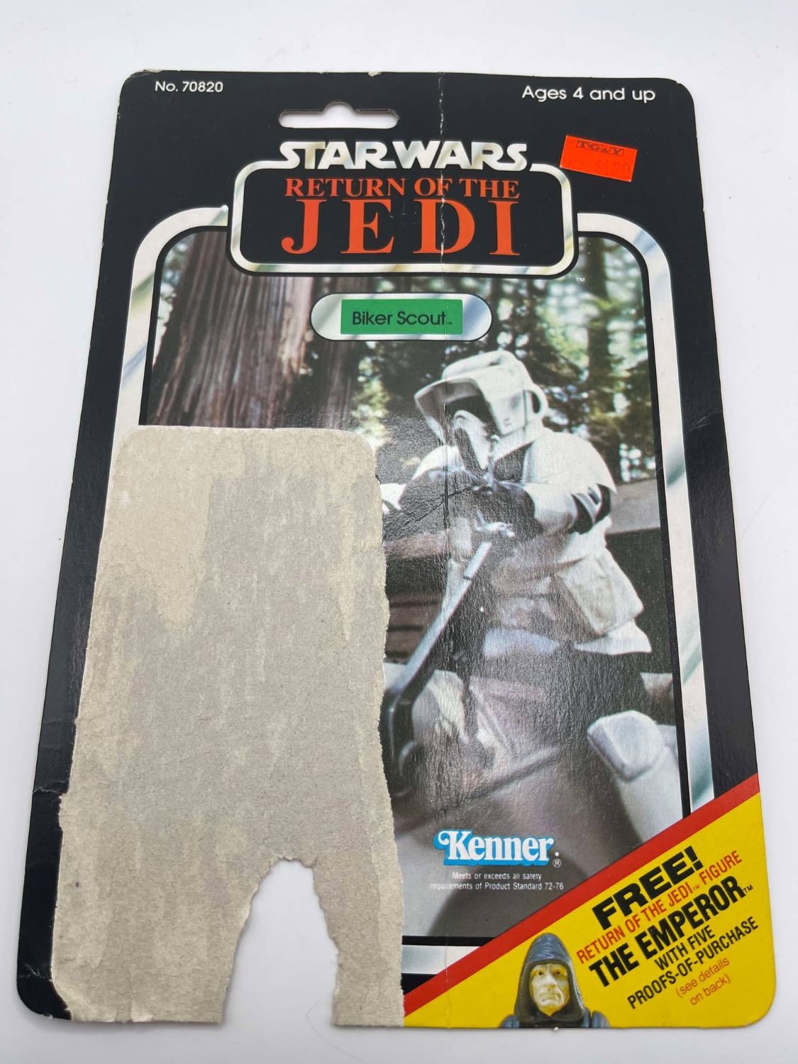 Vintage Star Wars - Cardback Lot - 12 Cardbacks. 1982 ESB Cardback - Imperial Stormtrooper (Hoth) - 47 Back - MIssing POP & Nameplate. Cut to get nameplate out & Creased. 1983 RoTJ Cardback - 8D8 - 77 Back - Great Condition. 1984 RoTJ Cardback - Biker Scout - 65 Back - with Emperor Offer - Creased. 1983 RoTJ Cardback - General Madine - 65 Back. 1983 RoTJ Cardback - Klaatu - 77 Back. 1983 RoTJ Cardback - Logray - 65 Back. 1984 RoTJ Cardback W/ Bubble - Paploo - 79 Back - with Anakin Offer. 1983 RoTJ Cardback - Prune Face - 77 Back. 1983 RoTJ Cardback - Rebel Commando - 65 Back - Chewy Bandolier Offer on back. 1983 RoTJ Cardback - Ree-Yees - 65 Back. 1983 RoTJ Cardback - Squid Head - 65 Back. 1983 RoTJ Cardback - Wicket W Warrick - 77 Back - Great Condition.