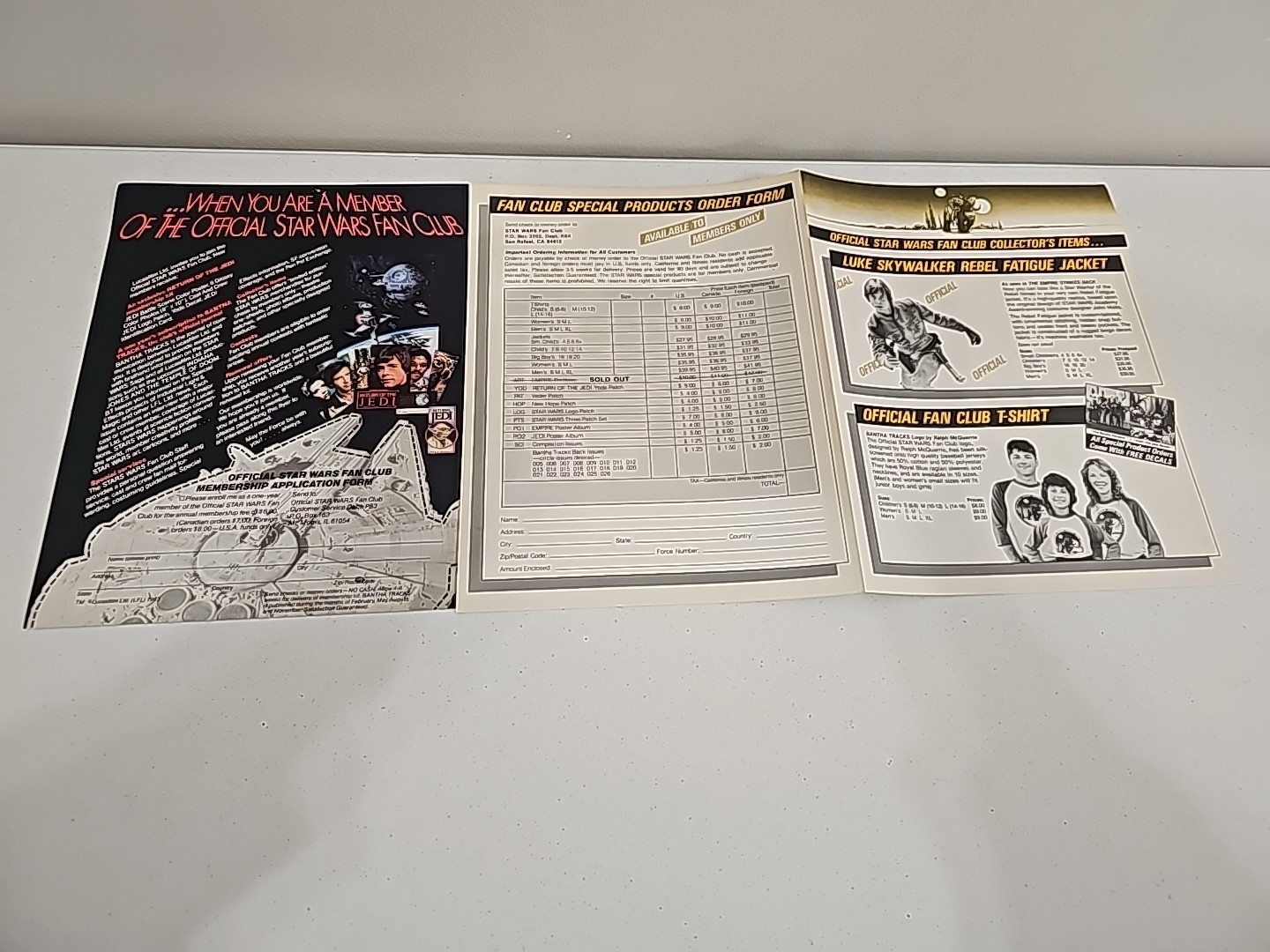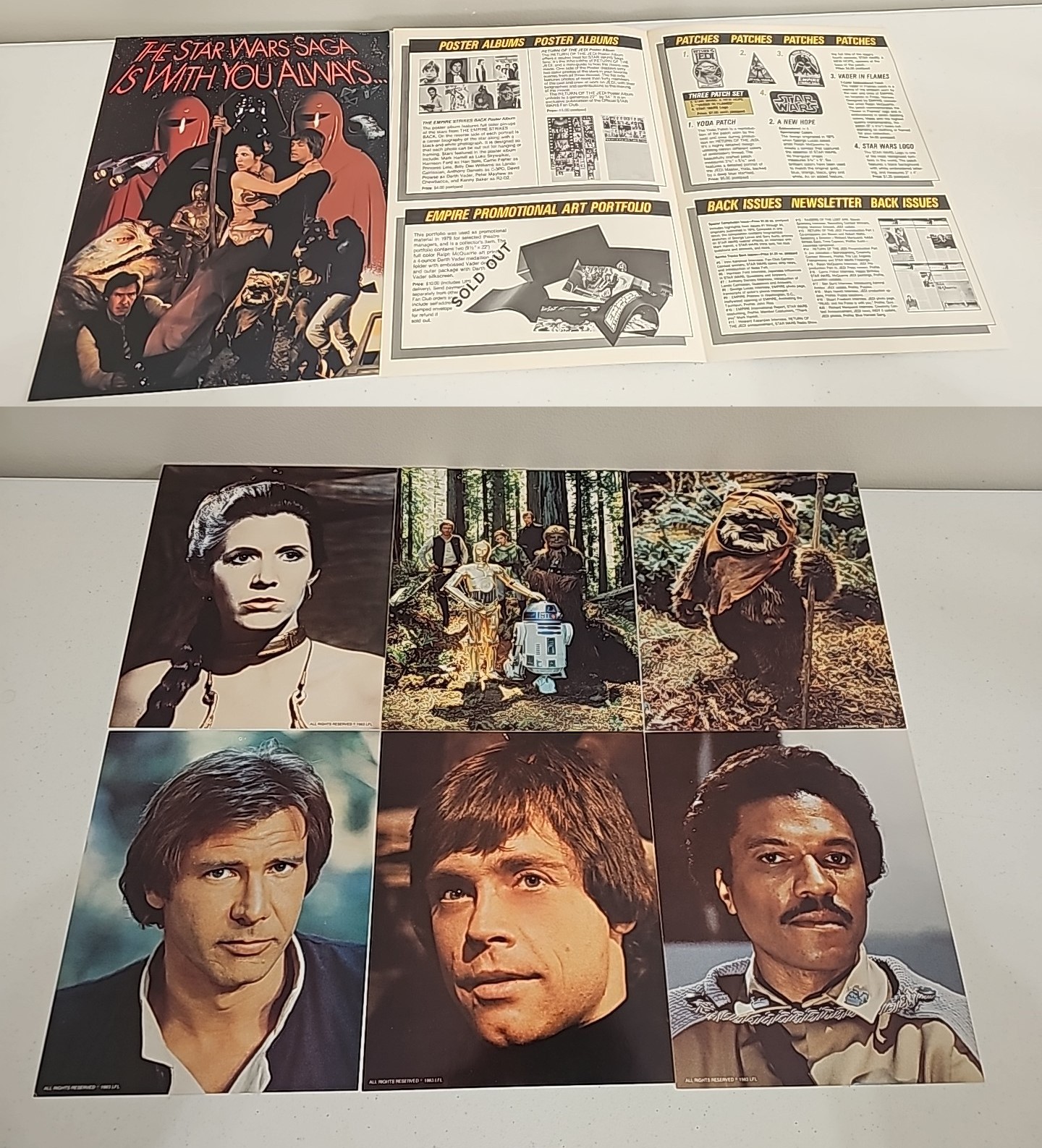 Vintage Star Wars Official Fan Club Paper Lot; 6 Character 8x10 pictures, Order Form, Poster Condition:VG Valuation code: C8 $25-$100