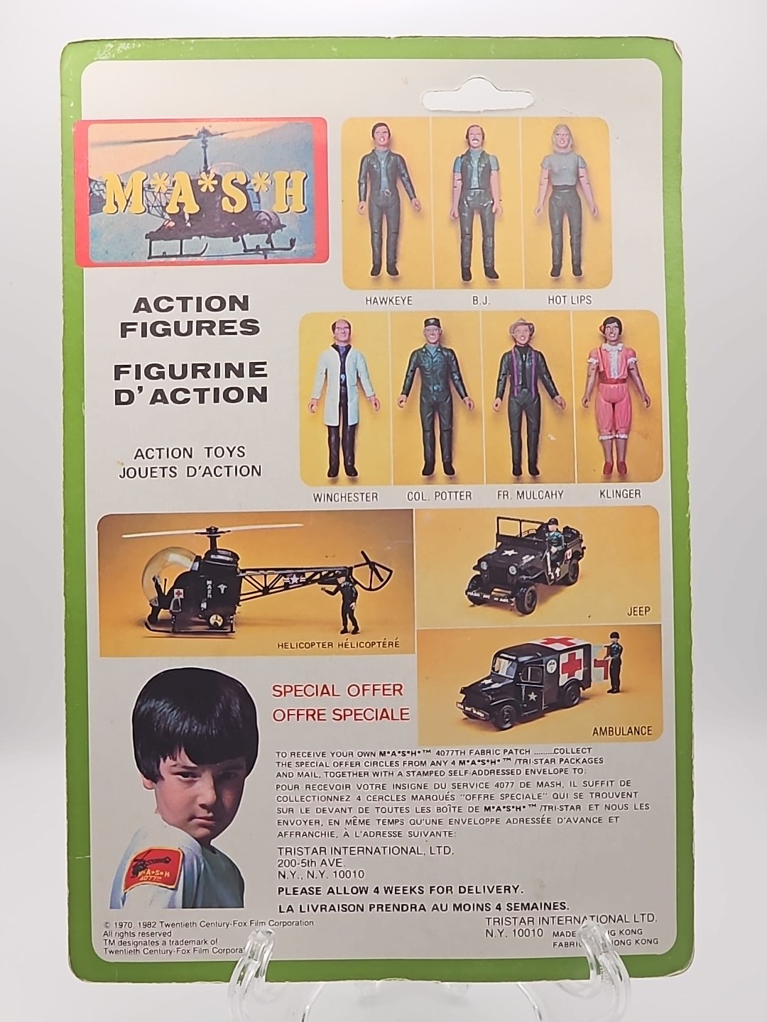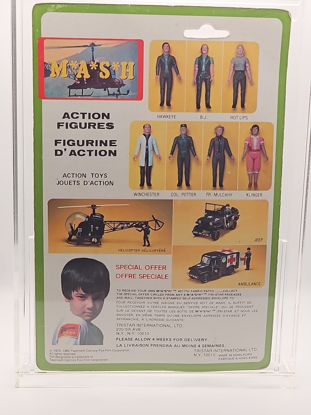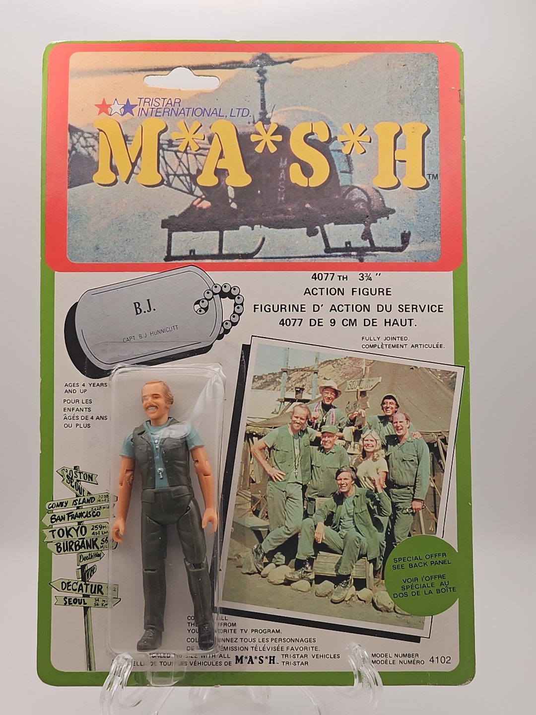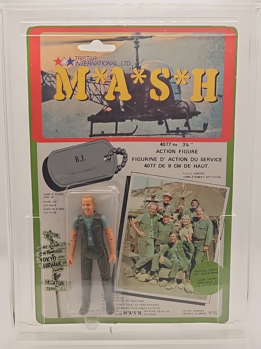 1982 B.J. Canadian MOC with acrylic case. Top of bubble is squished no cracks or holes fully sealed. Condition: Fine Value Code: C8 ($25-$100)
