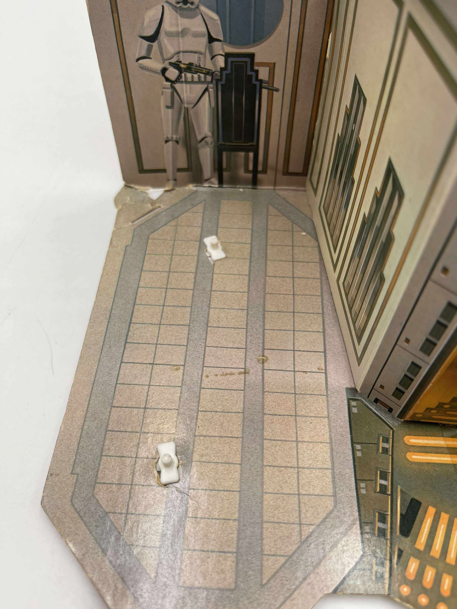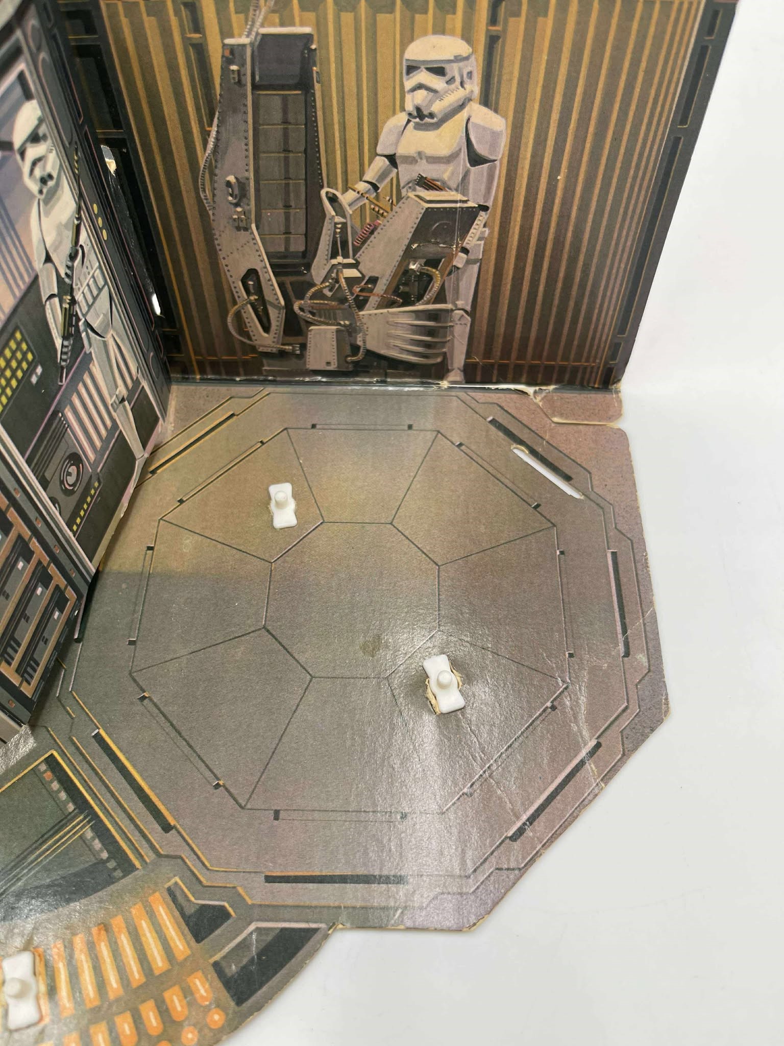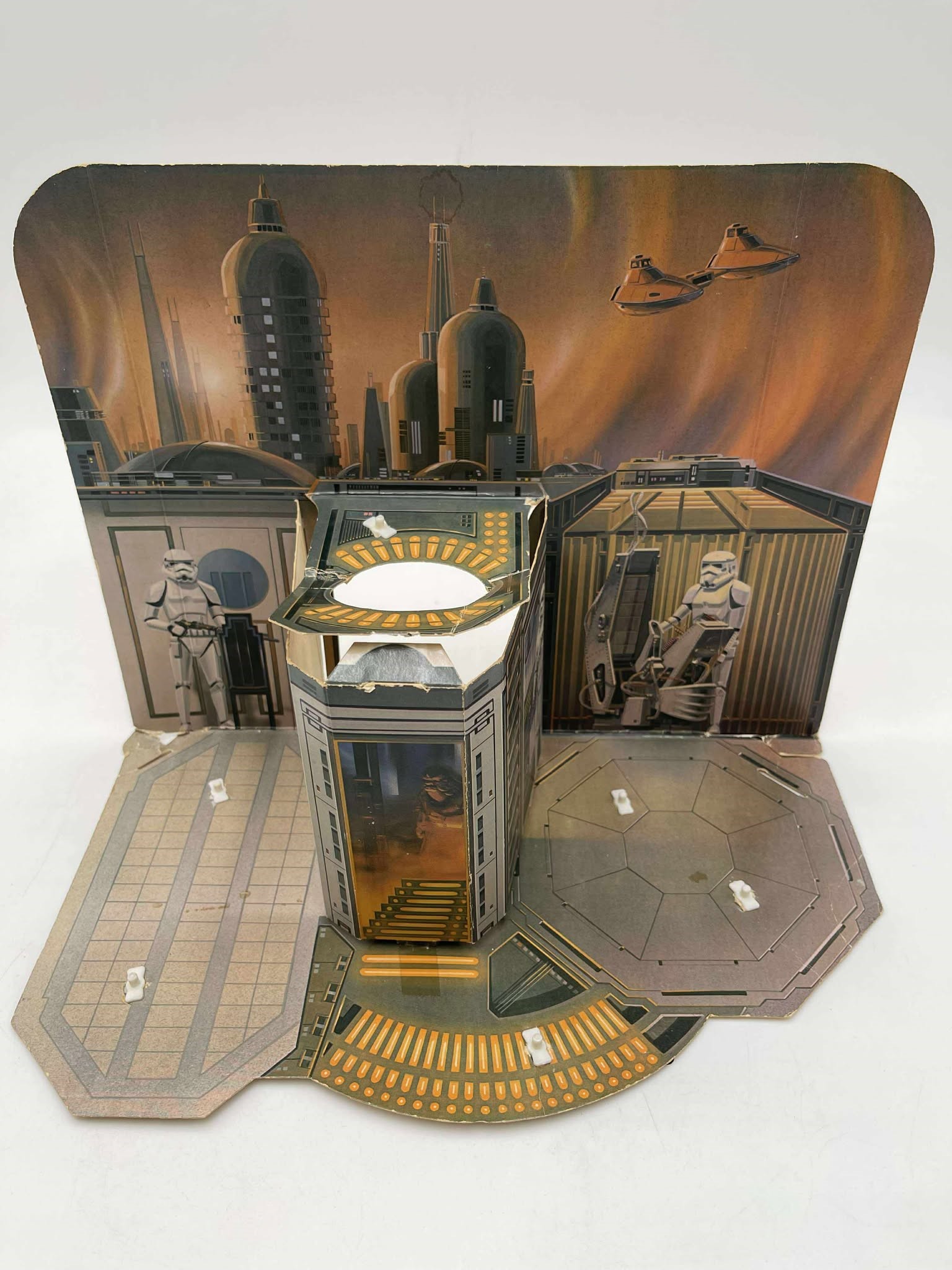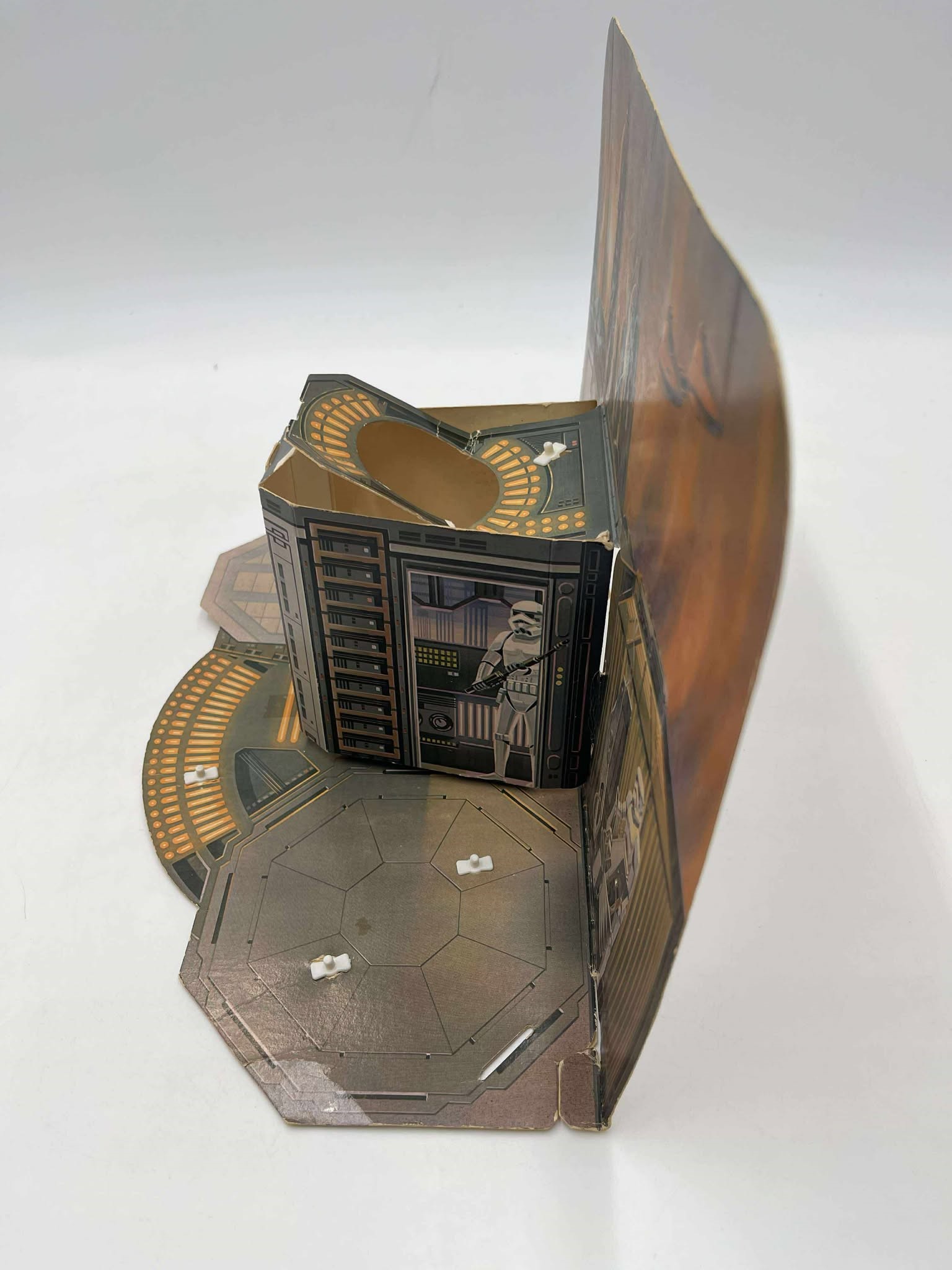 1980 - Kenner - ESB Cloud City Playset (Complete) - This lod also comes with 12 Loose action figures. Han Solo, Chewbacca, Luke Bespin, Leia Bespin, Lando Calrissian, Lobot, 2 Bespin GUards (White), Han Solo In Carbonite, Darth Vader, & 2 Stormtroopers. The top flap is creased and missing a tab. Condition: VG Value Code: C8 ($200-$400)