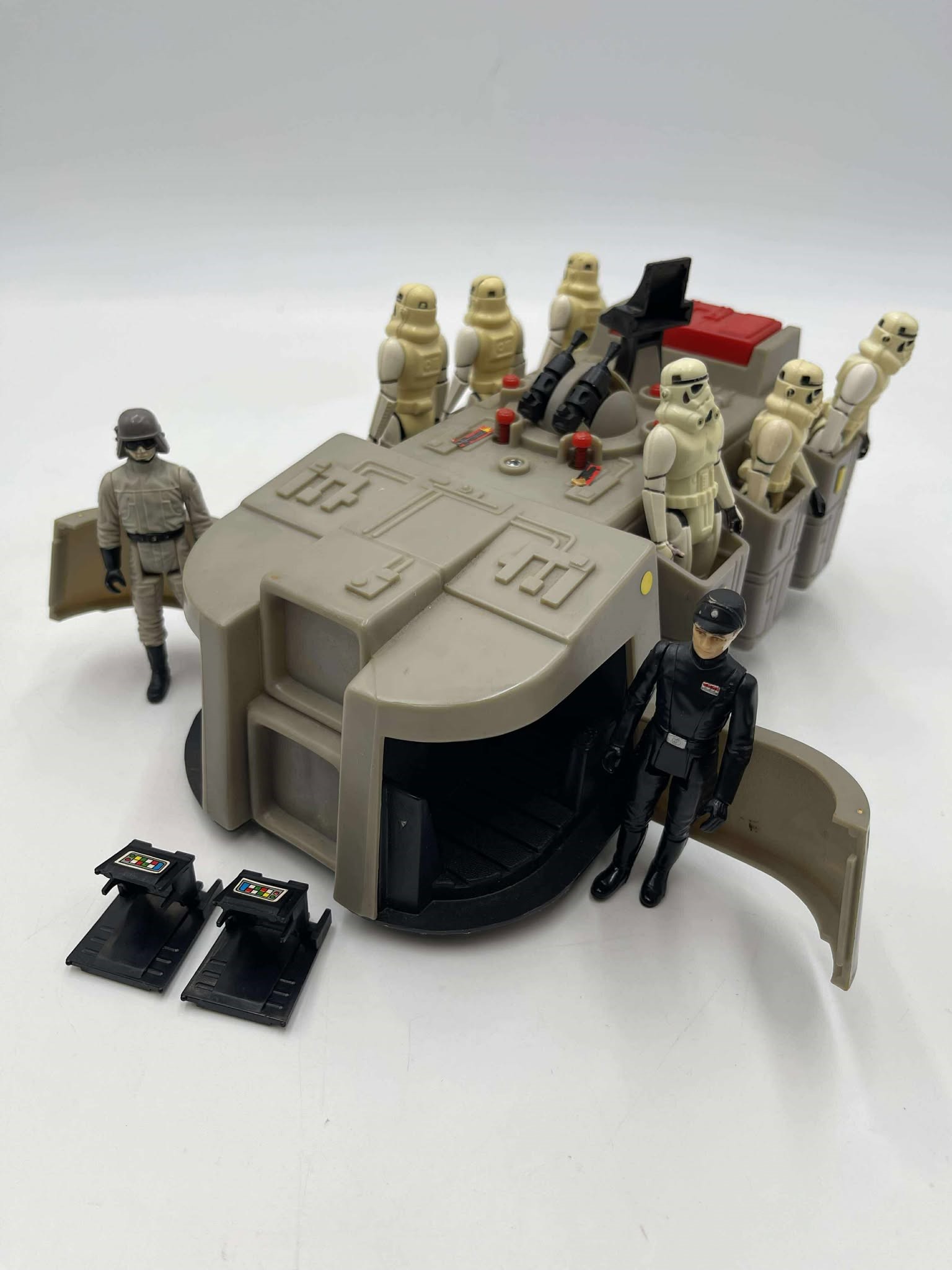 1979 - Kenner - Star Wars Imperial Troop Transporter (Complete w/ Working Electronics) - This lot also comes with 8 loose action figures. Stormtrooper x6, Imperial Commander & AT-ST Driver. Condition: VF Value Code: C7 ($100-$200)
