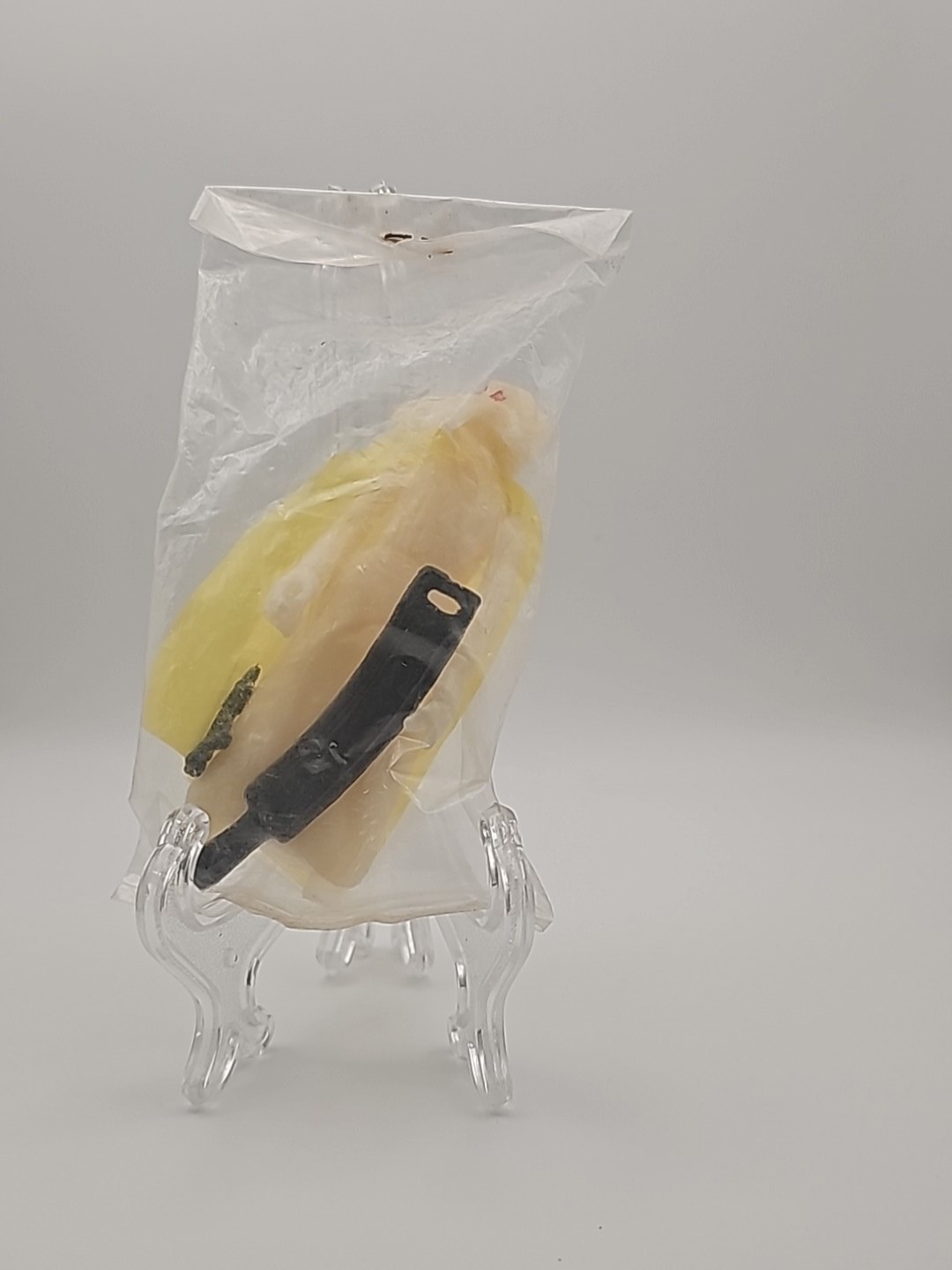 1980's Vintage Mexican Yellow Squidhead Sealed with cape, blaster, and belt. Original sealed baggie Condition: EXC Value Code: C3 ($1,000-$2,000)